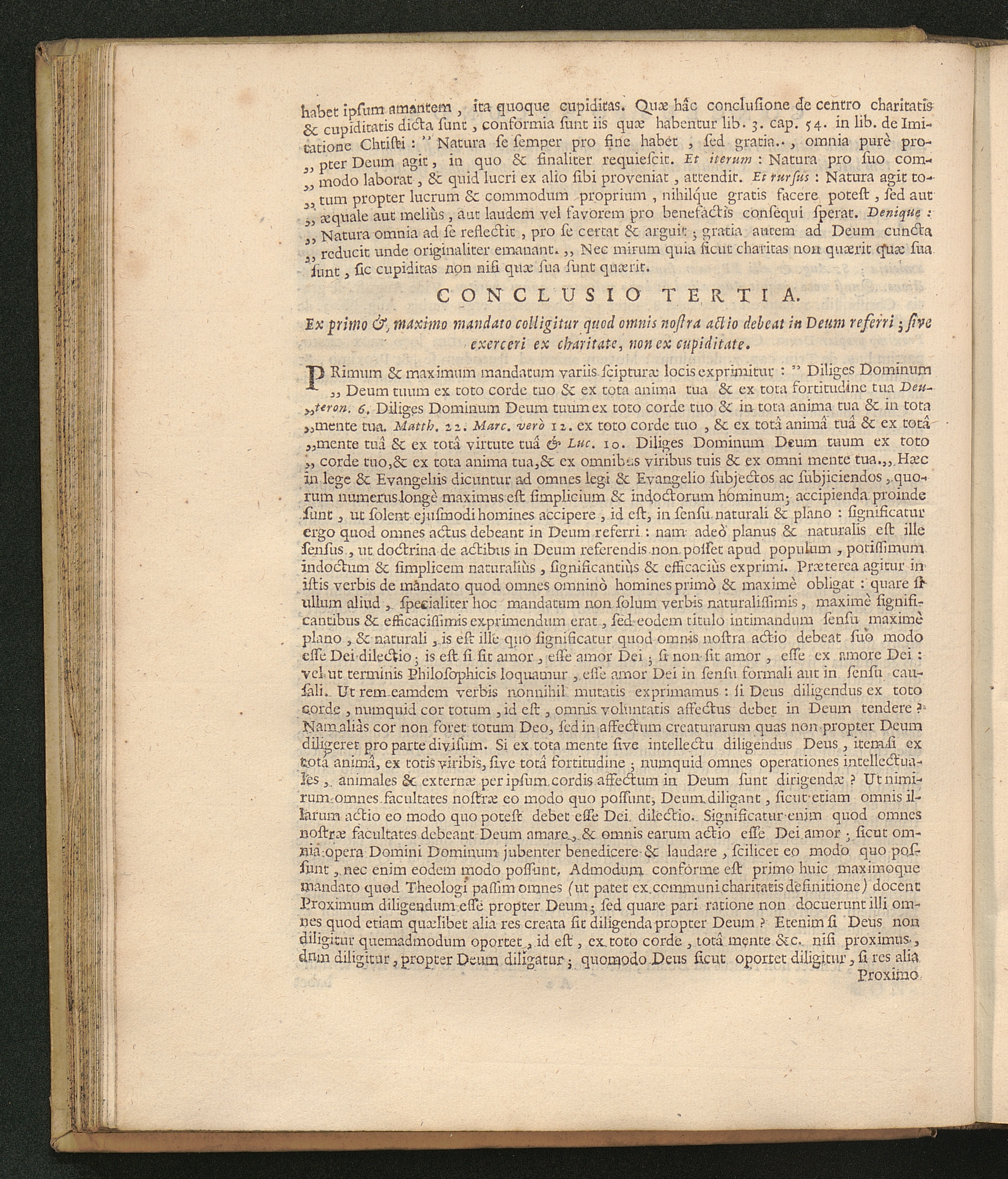 Conclusio Tertia. Ex primo & maximo mandato colligitur quod omnis nostra actio debeat in Deum referri; sive exerceri ex charitate, non ex cupiditate.