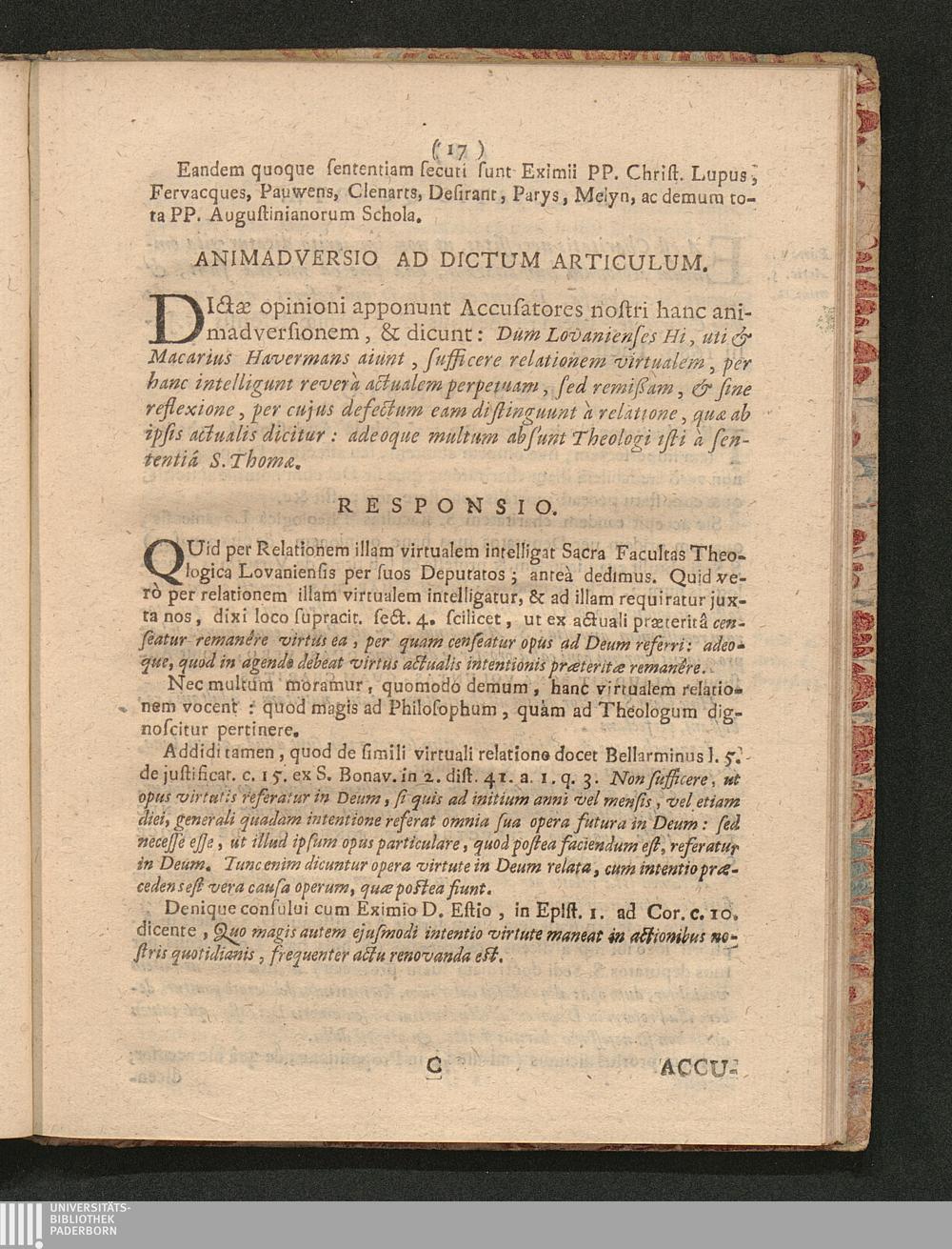 Responsio Ad Accusationes Quibus De Mala Doctrina Accusatur Apud S. Sedem Florentius De Cocq Ecclesiæ S. Michaëlis Antverpiæ Ord. Præmonstrat. ... In Libello, Cui Titulus: Propositiones per Belgium disseminatæ, jussu congregationis S. Officii Collectæ, atque ad supremum Innocentii XII. Pont. Max. tribunal delatæ per Theologos Orthodoxæ fidei, & authoritatis Pontificiæ defensores