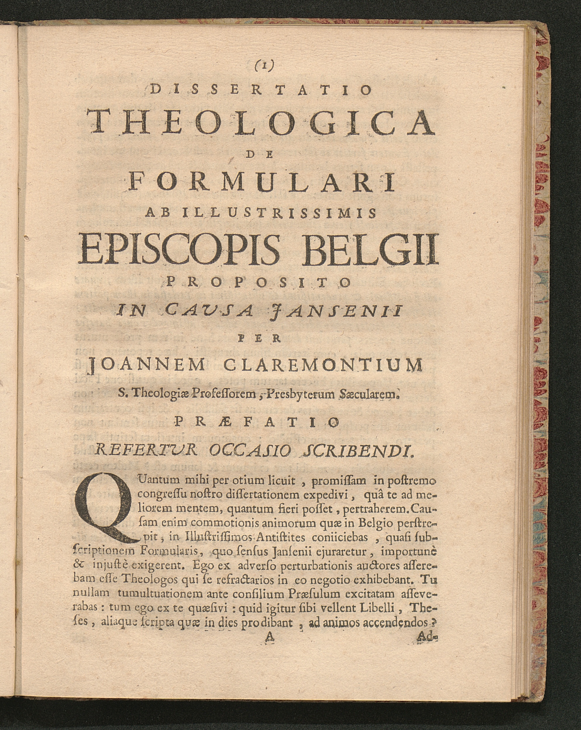 Dissertatio Theologica De Formulari Ab Illustrissimis Episcopis Belgii Proposito In Causa Jansenii / Per Johannem Claremontium S. Theologiæ Professorem, Presbyterum Sæcularem