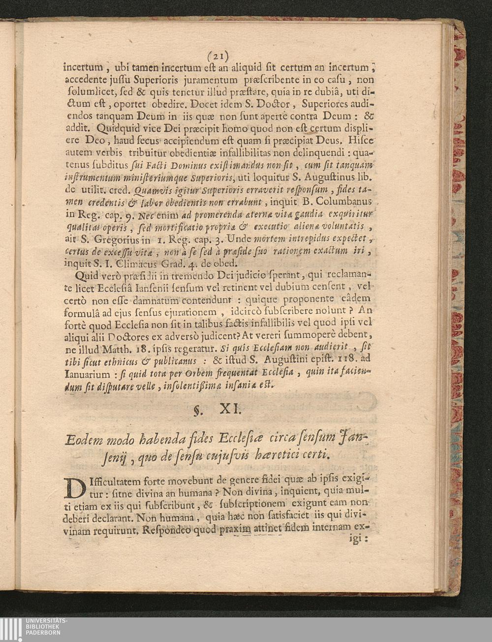 §. XI. Eodem modo habenda fides Ecclesiӕ circa sensum Jansenij, quo de sensu cujusvis[...]