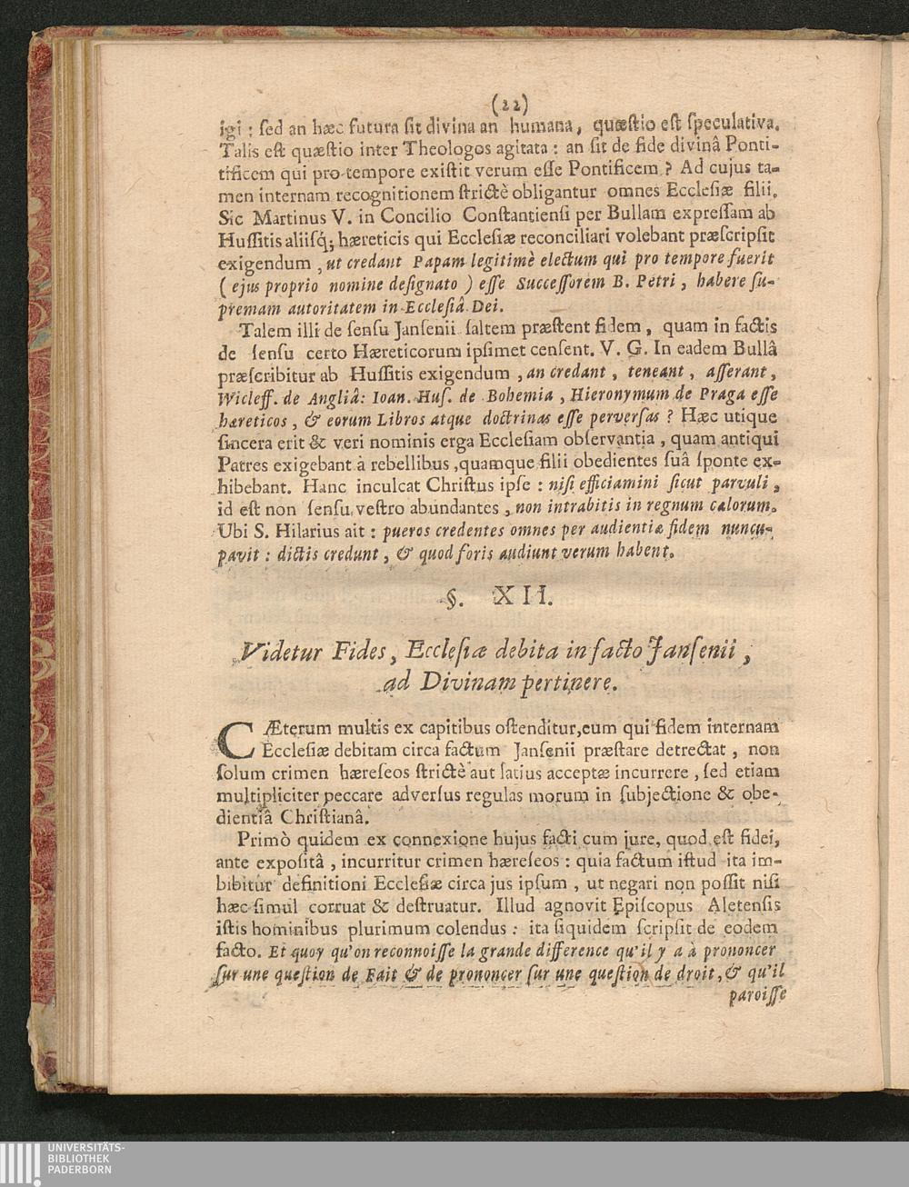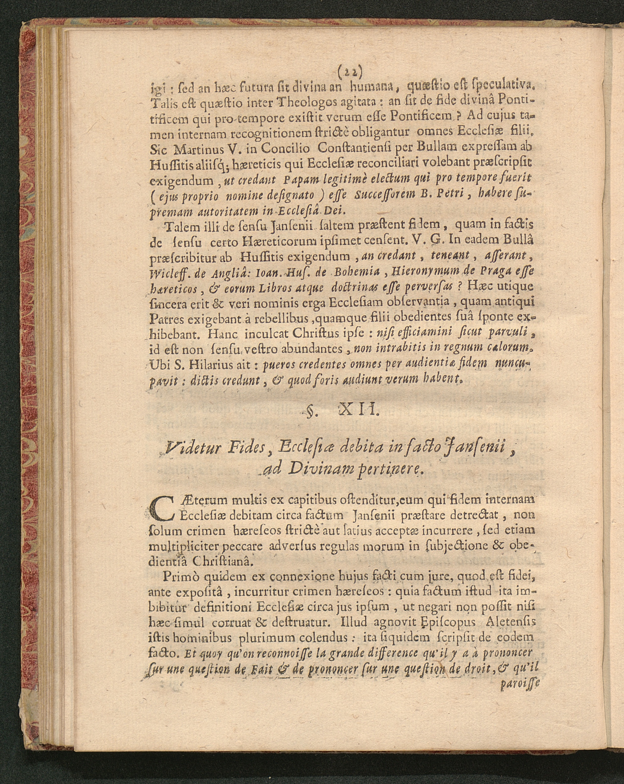 §. XII. Videtur Fides, Ecclesiӕ debita in facto Jansenii, ad Divinam pertinere.