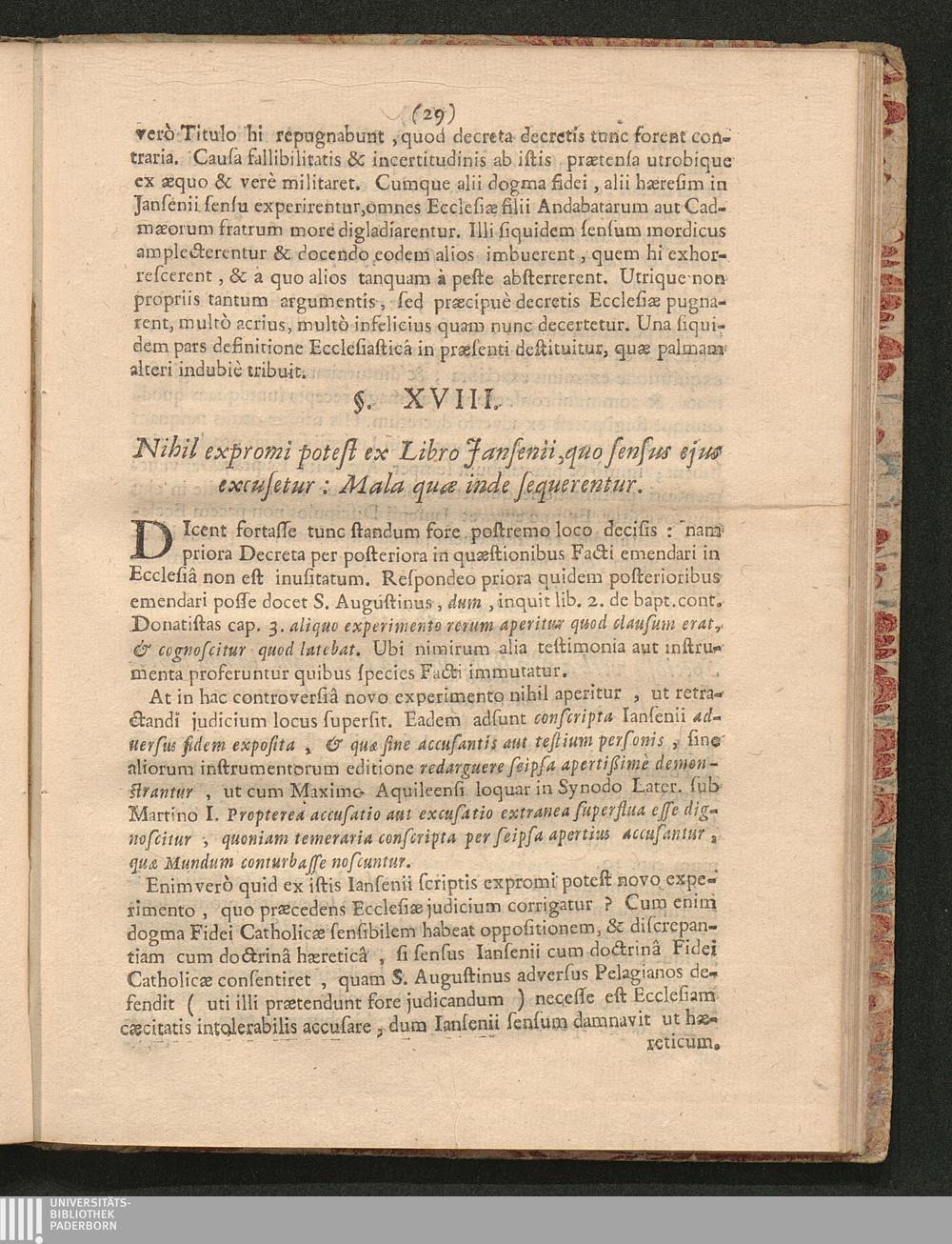 §. XVIII. Nihil expromi potest ex Libro Jansenii, quo sensus ejus excusetur: Mala[...]
