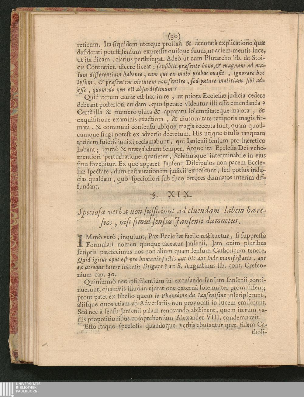 §. XIX. Speciosa verba non sufficiunt ad eluendam labem hӕreseos, nisi simul sensus Jansenii damnetur.