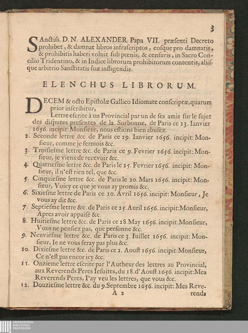 Decretvm Sanctiss. In Christo Patris Ac D. N. D. Alexandri Papæ VII. : Feria v. Die 6. Septembris 1657. In Congregatione generali Sanctæ Romanæ, & Vniversalis Inquisitionis habita in Palatio Apostolico apud Sanctam Mariam Majorem, coram Sanctiss. D. N. Alexandro, ... contra hæreticam pravitatem Inquisitoribus generalibus, à Sancta Sede Apostolica specialiter deputatis