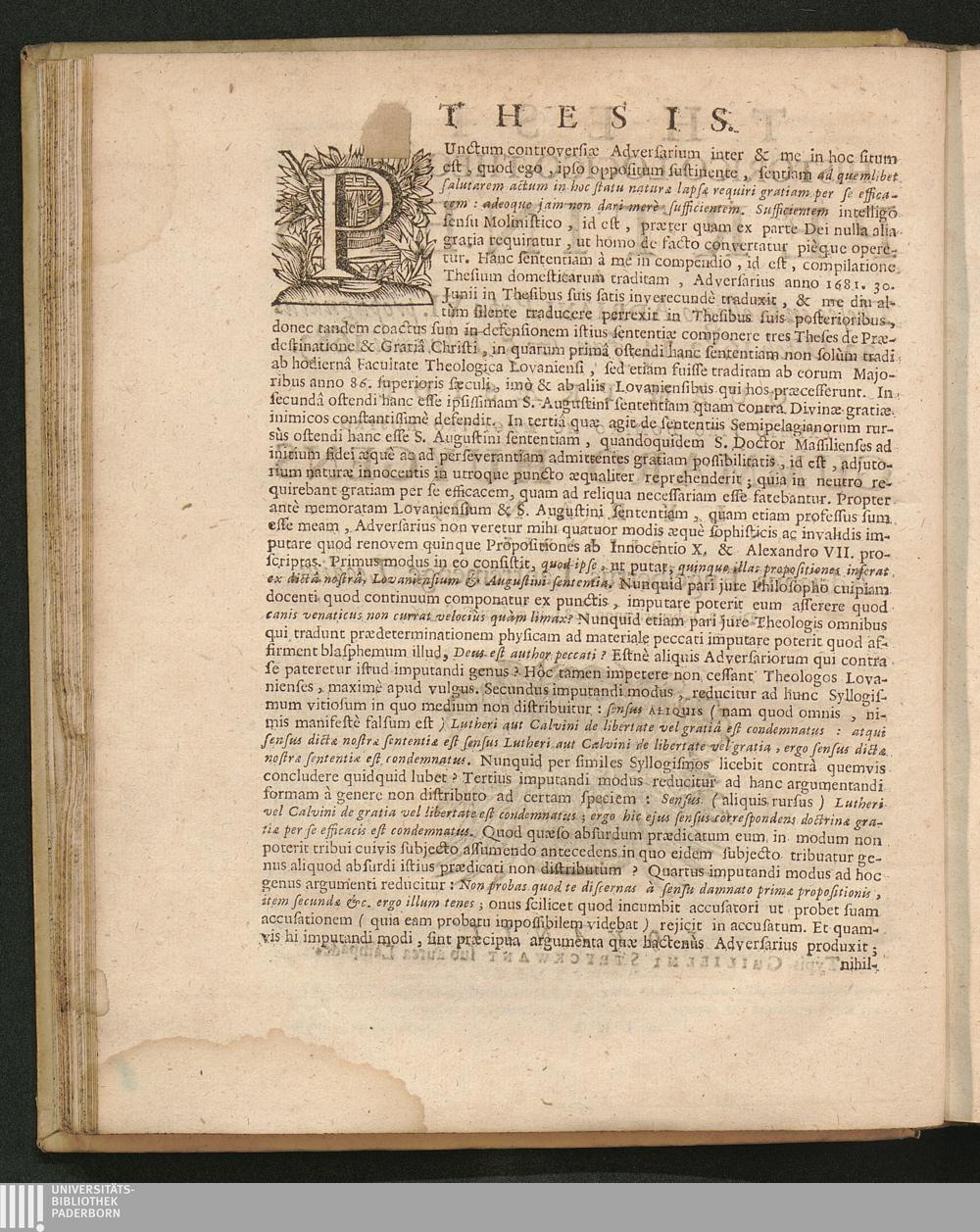 Thesis Historico-Logico-Theologica Pertinens Ad Theses in Collegio Adriani Papae VI. propugnatas 22. Octob. 1682. 14. Jan. & 5. Februarii 1683. / Quam Praeside ... Gummaro Huygens Lyrano, Defendet Adrianus Engelbertus Lantremenge Leodius. Die 18. Februarii anno 1683. in eodem Collegio