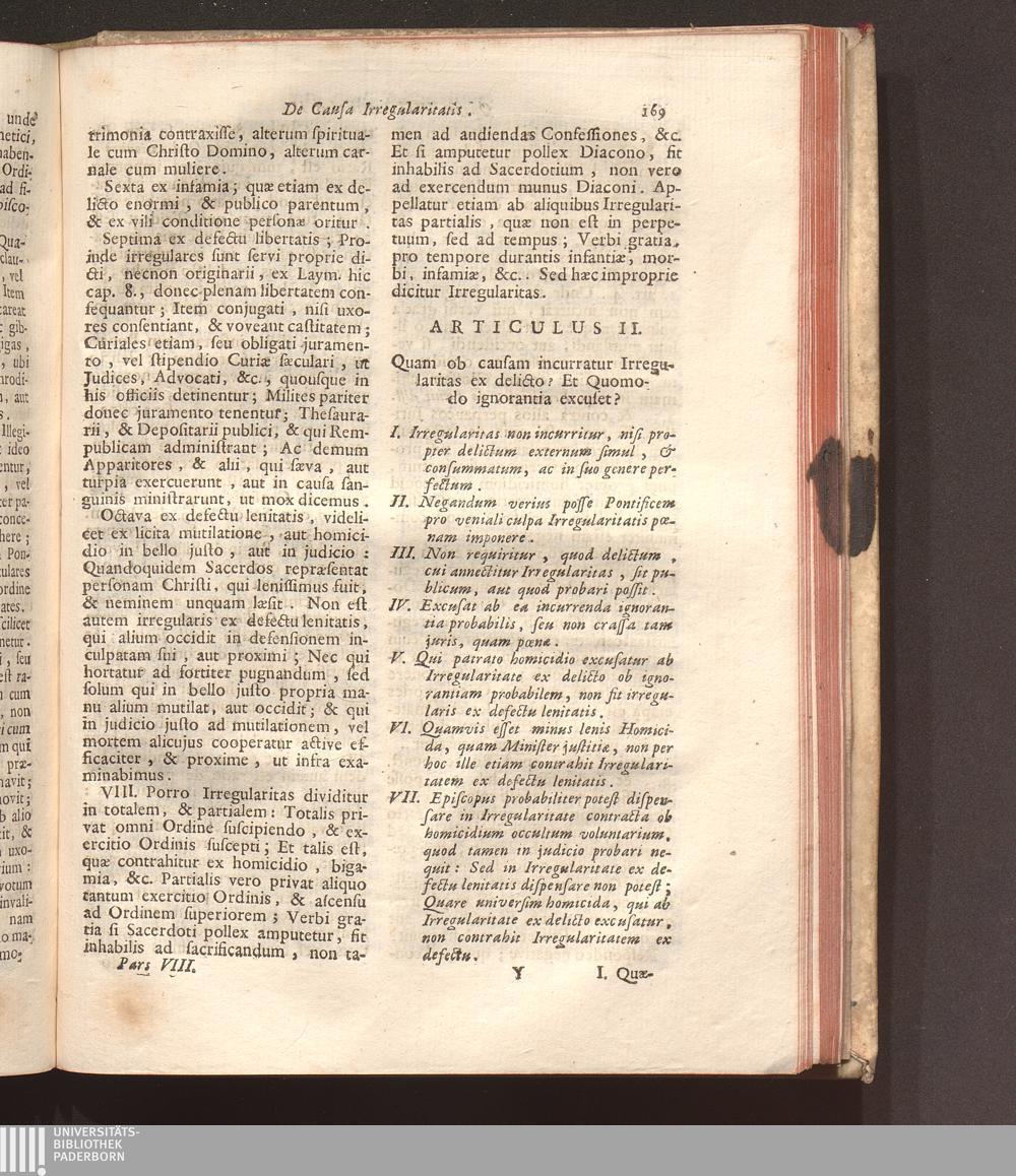 Quӕstio VIII. De Irregularitate.