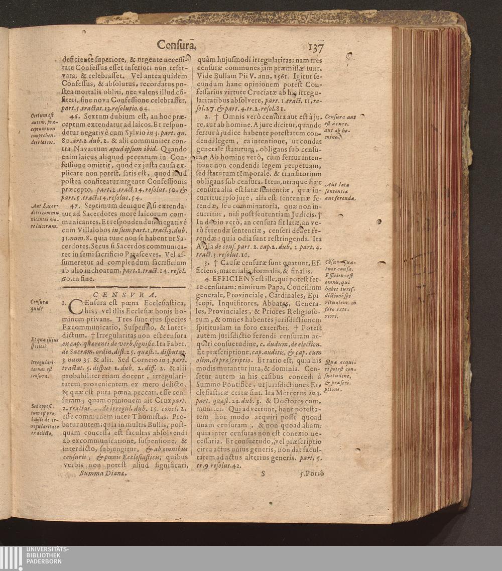 Svmma Diana / In Qva R. P. D. Antonini Diana, Panormitani Clerici Regvl. Coram S. D. N. Vrbano VIII. & Innocentio X. ... Opera Omnia Vndecim partibus comprehensa: Septem nempe priores, Diana ipso committente & approbante, Antonio verò Cotonio, Aliàs Avsonio Noctinot Siculo Tertij Ordinis S. Francisci operam dante: Quatuor denique postremæ, tum à R. D. Andrea Gvadagno Quintiano, S. T. D. & Prædicatore; tum Jacobi Pontani Doctoris Theol. aliorumque Theologorum Coloniensium, studio recèns collectæ, in vnicum Volumen arctantur