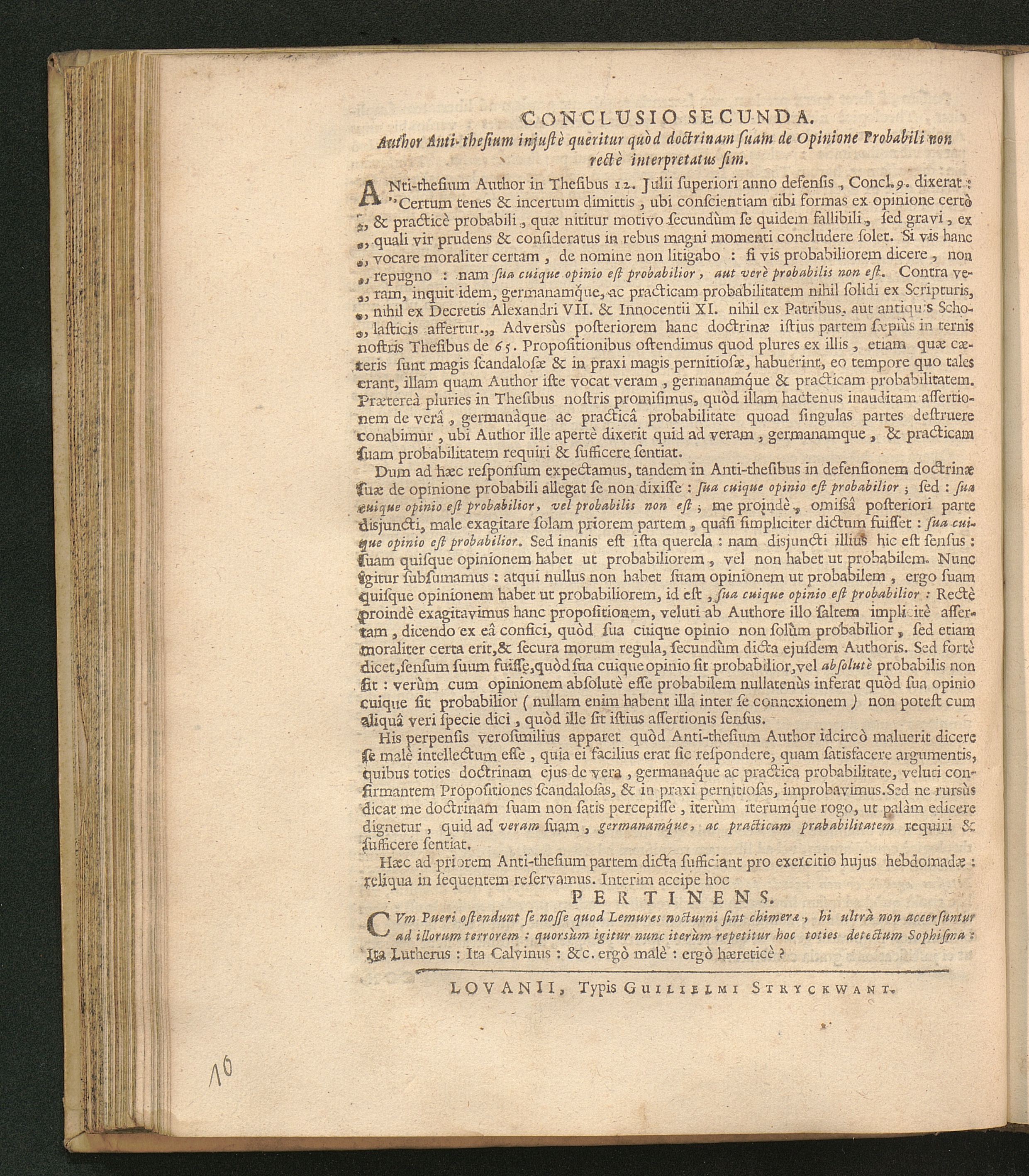 Theses Theologicae Pertinentes ad anteriores Theses defensas in Collegio Adriani Papae VI. / Quas Praeside ... Gummaro Huygens Lyrano, In eodem Collegio defendet die 3. Martii anno 1684. Laurentius Laurenti Verviensis