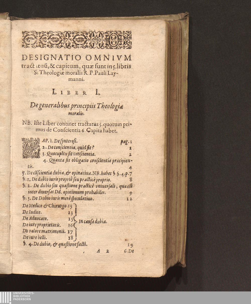 Designatio Omnivm tractatuu[m], & capitum, quӕ sunt in 5. libris S. Theologiӕ moralis[...]