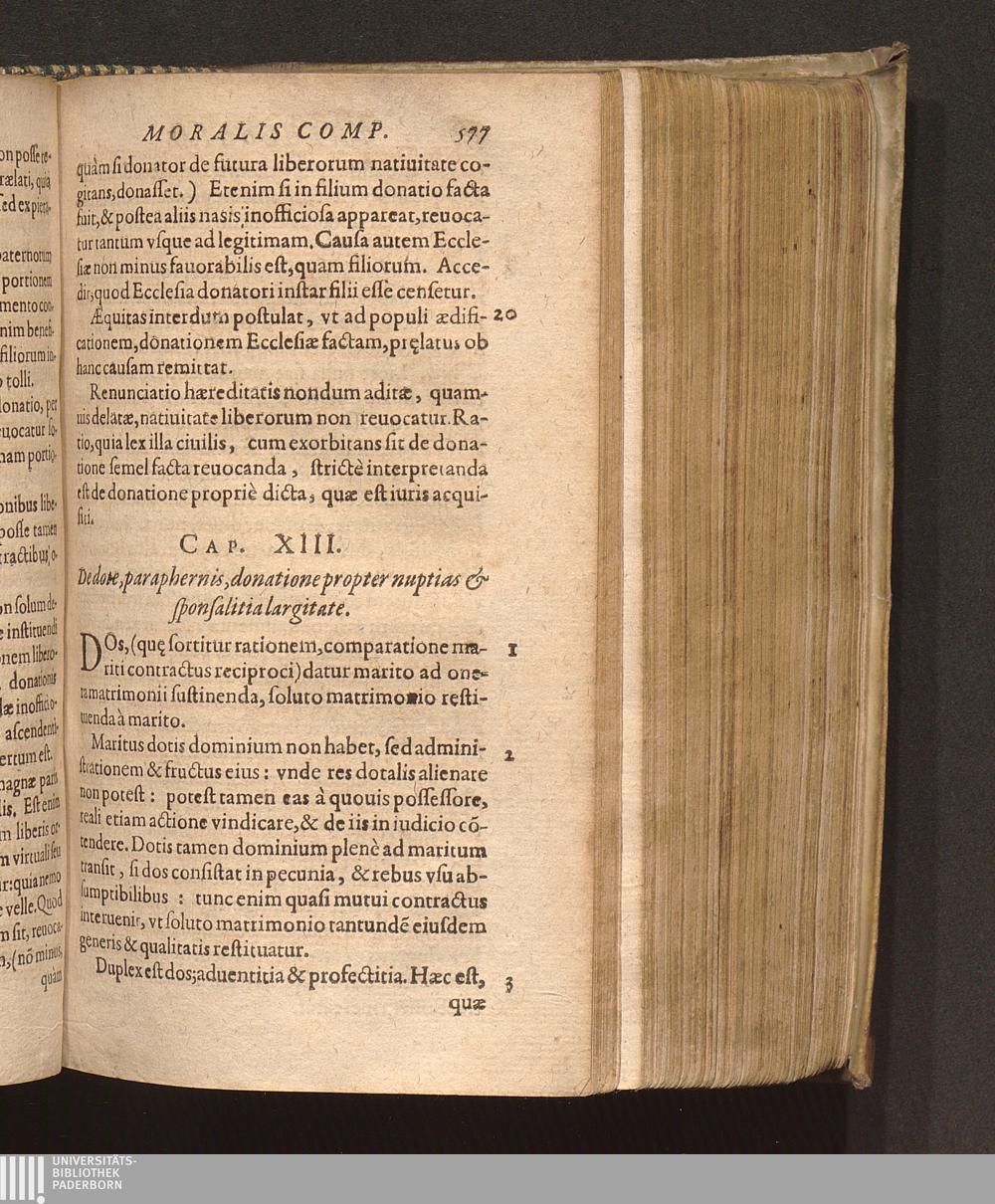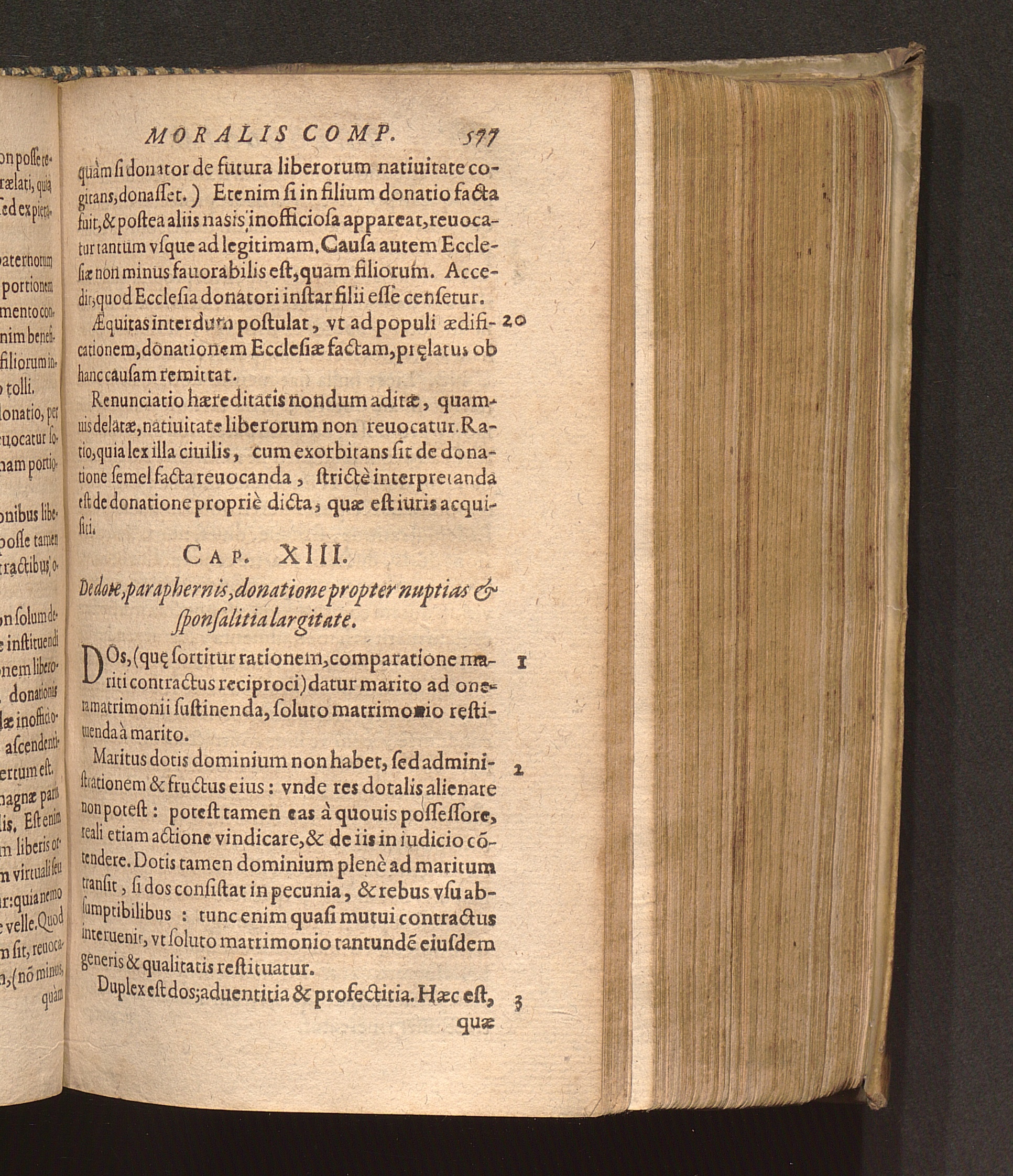13. De dote Paraphernis, donatione propter nuptias & spo[n]salia largitate.