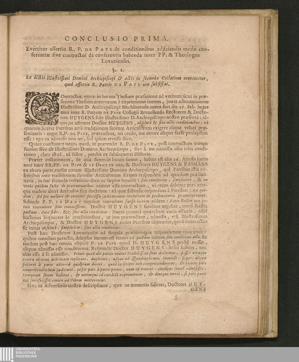Theses Theologicae Adversus Anti-Theses Oppositas Nuperis Thesibus nostris Theologicis, Id Est, Articulis Theologorum Lovaniensium Exhibitis Illustrissimo ac Reverendissimo Domino Archiepiscopo Mechliniensi / Quas Praeside ... Gummaro Huygens Lyrano, Defendet Franciscus Jacobus Vivien Bruxellensis. In Collegio Adriani VI. Pontificis die 20. Augusti 1685