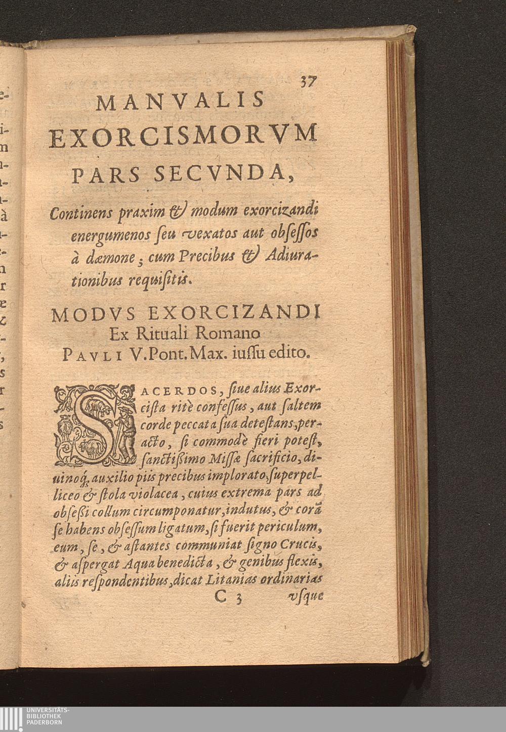 Manvale Exorcismorvm : Continens Instrvctiones, & Exorcismos ad eiiciendos è corporibus obsessis spiritus malignos, & ad quæuis maleficia depellenda, & ad quascumque infestationes dæmonum reprimendas / R. D. Maximiliani ab Eynatten ... Canonici & Scholastici Antuerpiensis industria collectum ... aliquot Belgii Antistitvm ... iudicio recensitum & probatum