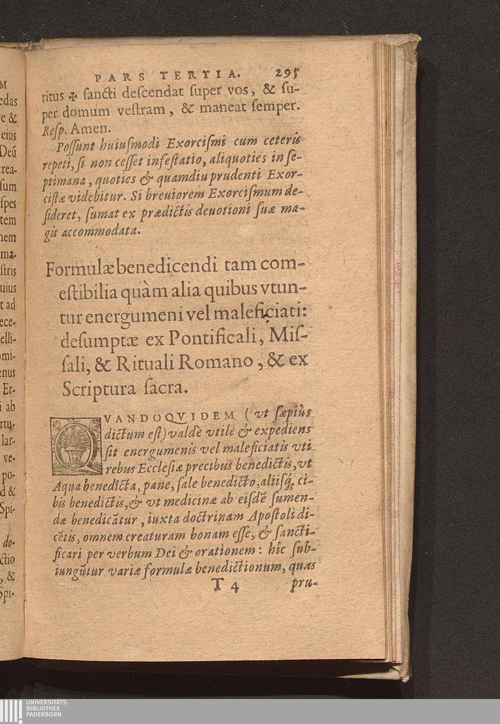 Manvale Exorcismorvm : Continens Instrvctiones, & Exorcismos ad eiiciendos è corporibus obsessis spiritus malignos, & ad quæuis maleficia depellenda, & ad quascumque infestationes dæmonum reprimendas / R. D. Maximiliani ab Eynatten ... Canonici & Scholastici Antuerpiensis industria collectum ... aliquot Belgii Antistitvm ... iudicio recensitum & probatum