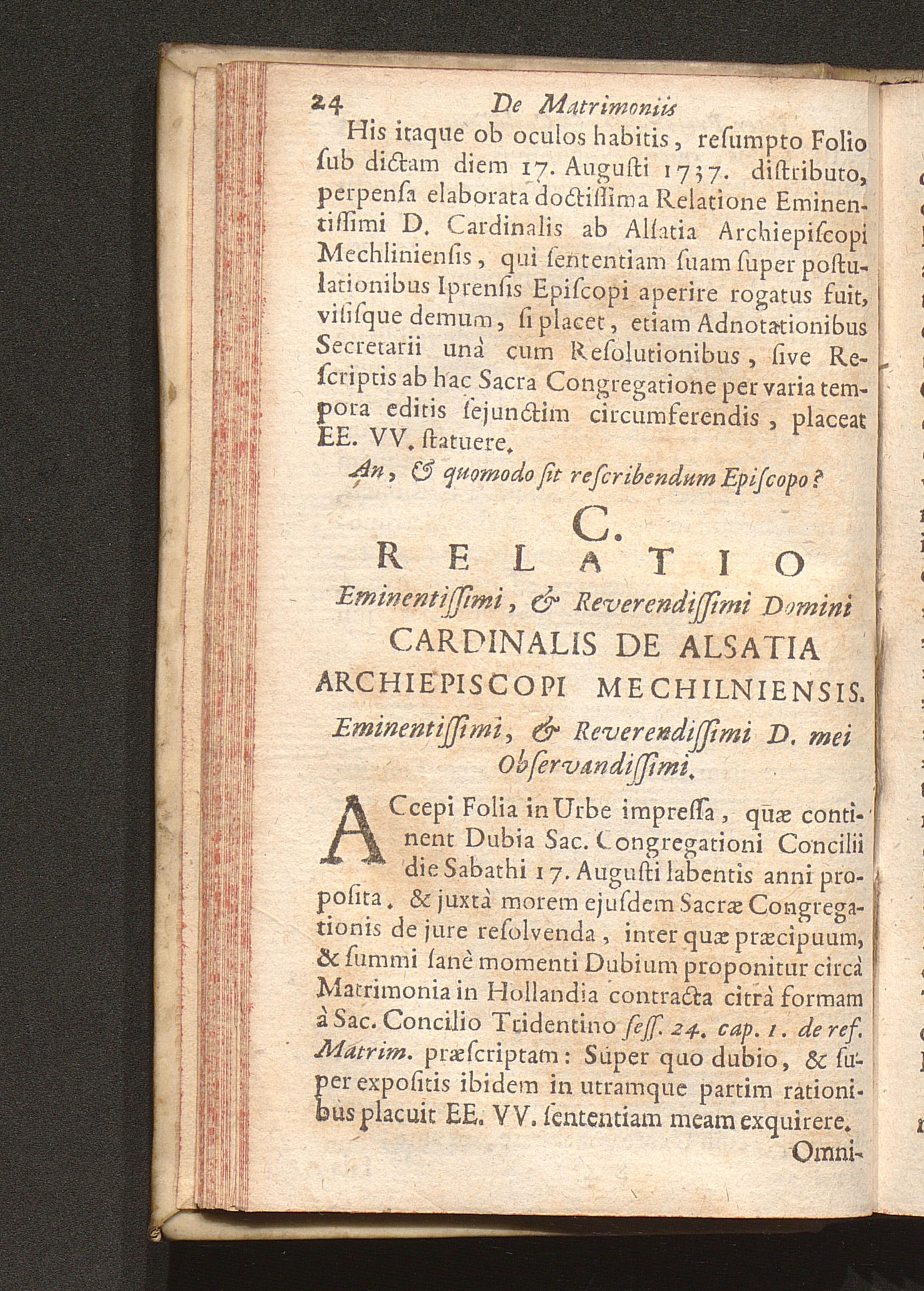 2. Exhibetur Iprenis Episcopi Consultatio prolixè diductis in utramque partem moments ab Historiâ, Jure, Theologiâ sumptis per quendam ex Illustrissimis S. Officii Assessoribus illustrata Eminentis. Cardinalibus oblata, ut an, & quid rescribendum, deliberent.