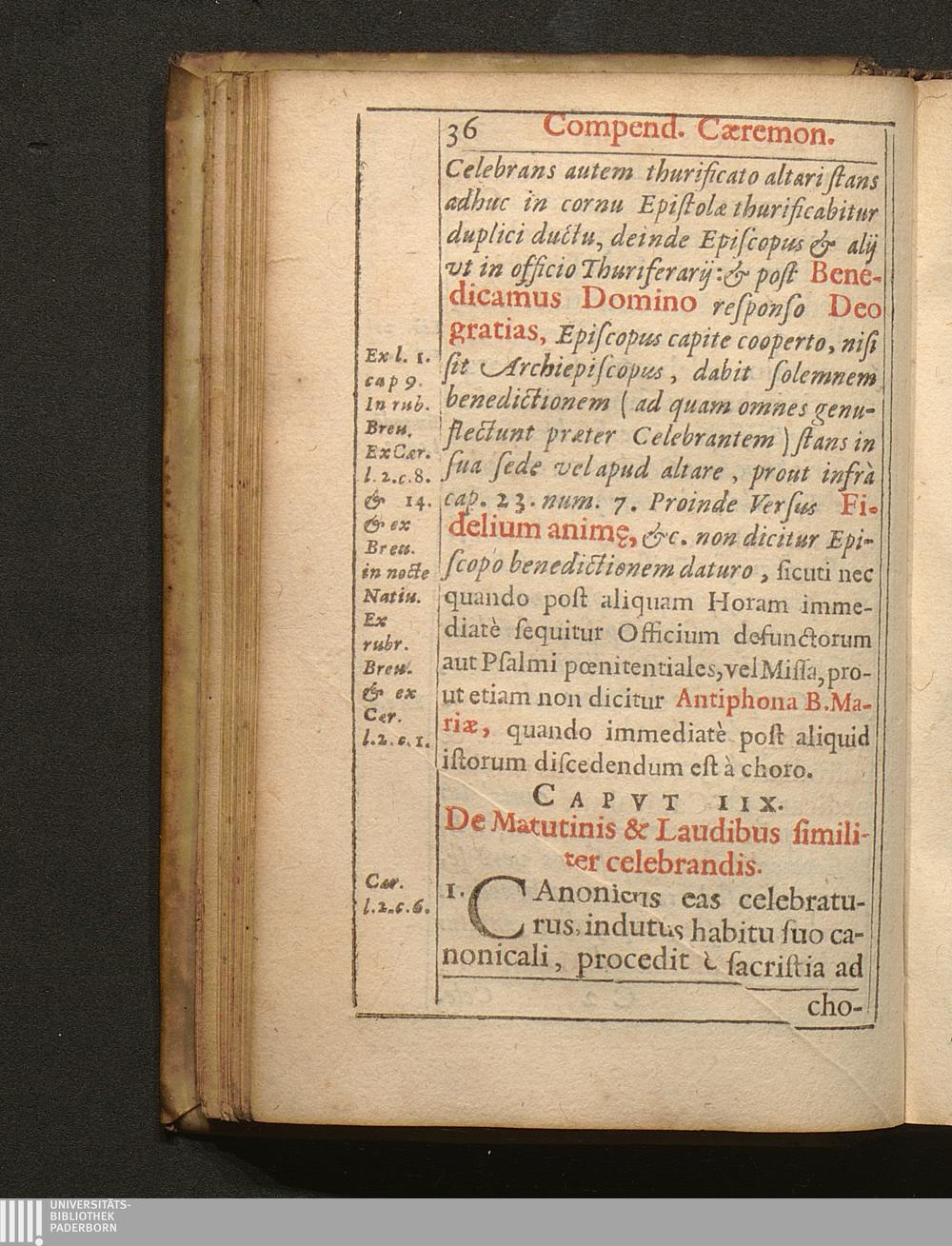 Compendivm Cæremoniarvm In celebratione Diuinorum Officiorum Observandarvm : Ex præscripto Cæremonialis ac Missalis Romani ... conformanda / Opera Ioannis Iacobs Canonici Ecclesiæ Cathedralis Brugensium collectum & concinnatum