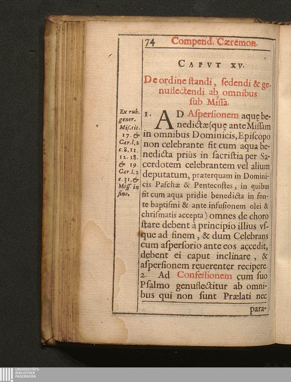 Compendivm Cæremoniarvm In celebratione Diuinorum Officiorum Observandarvm : Ex præscripto Cæremonialis ac Missalis Romani ... conformanda / Opera Ioannis Iacobs Canonici Ecclesiæ Cathedralis Brugensium collectum & concinnatum