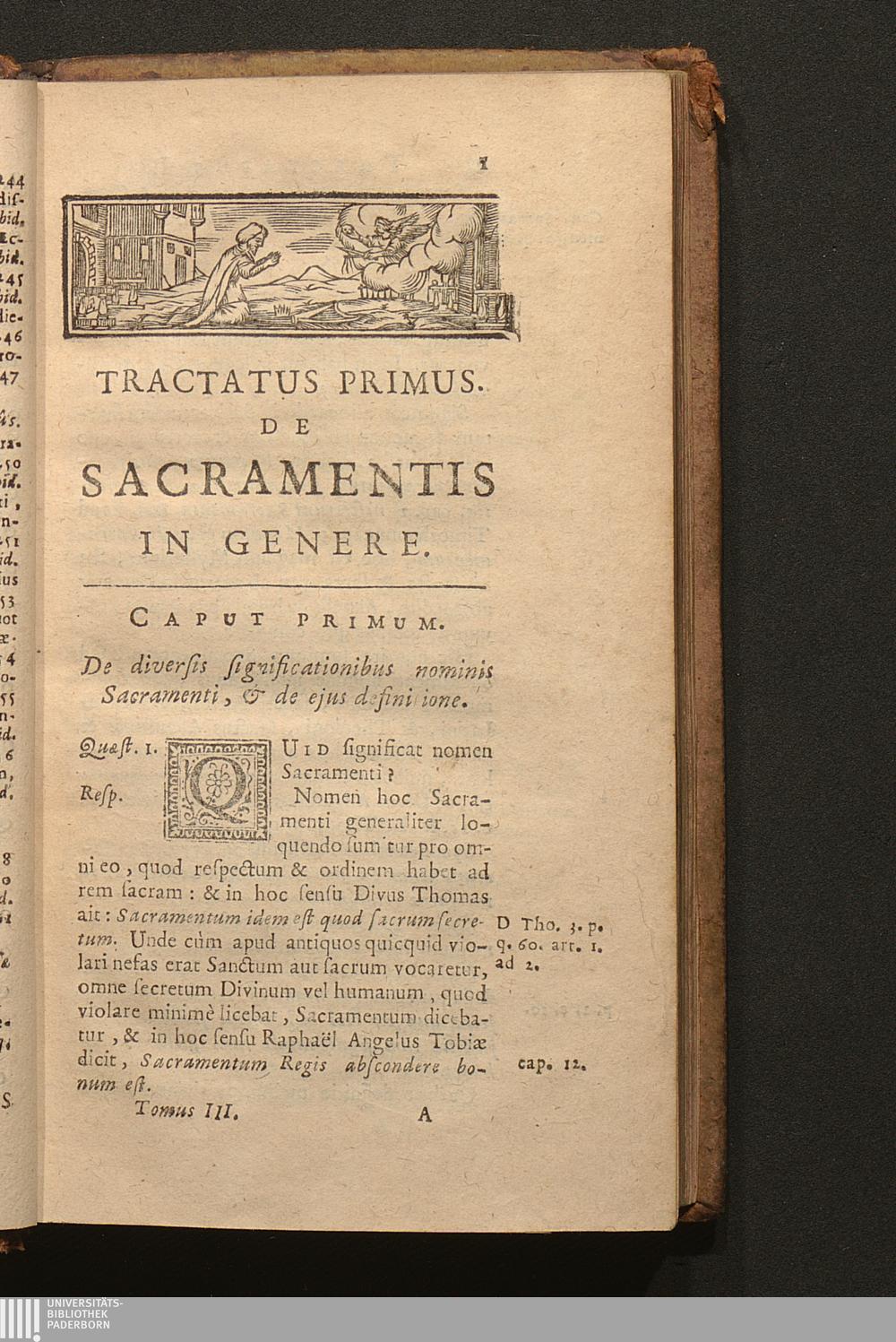 Tomus Tertius (1703) Continens Tractatus de Sacramentis in genere; de Baptismo, de Confirmatione, Eucharistia, Sacrificio Missæ; Constitutionem Innocentii XII. super celebratione Missarum, variaque alia decreta