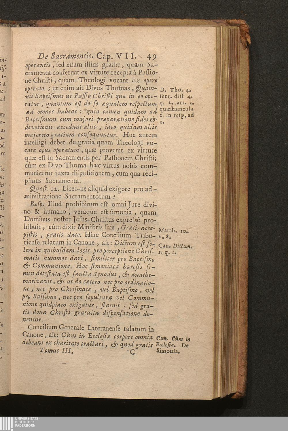 Tomus Tertius (1703) Continens Tractatus de Sacramentis in genere; de Baptismo, de Confirmatione, Eucharistia, Sacrificio Missæ; Constitutionem Innocentii XII. super celebratione Missarum, variaque alia decreta