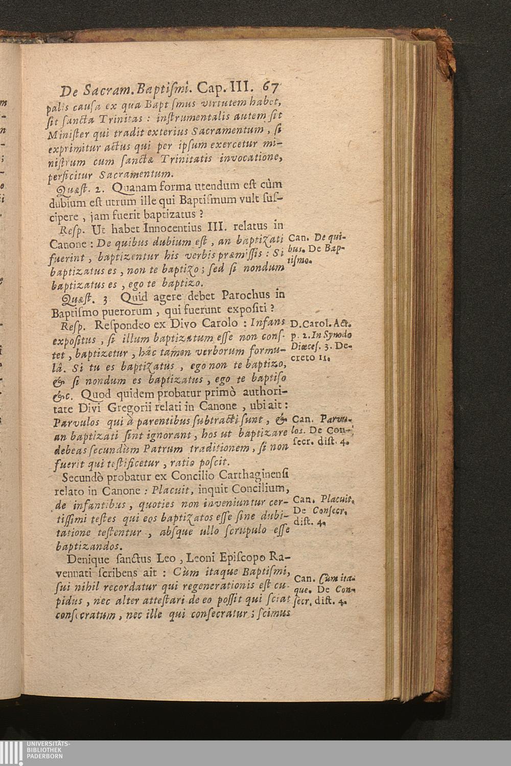 Tomus Tertius (1703) Continens Tractatus de Sacramentis in genere; de Baptismo, de Confirmatione, Eucharistia, Sacrificio Missæ; Constitutionem Innocentii XII. super celebratione Missarum, variaque alia decreta