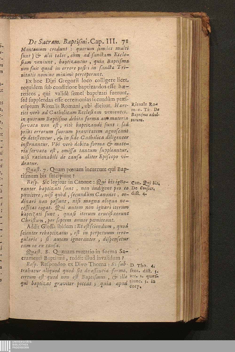 Tomus Tertius (1703) Continens Tractatus de Sacramentis in genere; de Baptismo, de Confirmatione, Eucharistia, Sacrificio Missæ; Constitutionem Innocentii XII. super celebratione Missarum, variaque alia decreta