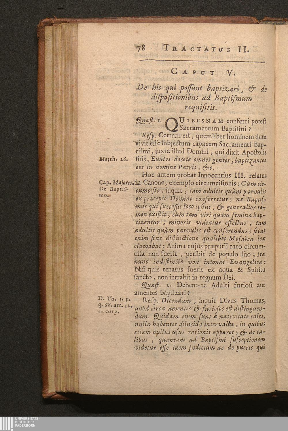 Tomus Tertius (1703) Continens Tractatus de Sacramentis in genere; de Baptismo, de Confirmatione, Eucharistia, Sacrificio Missæ; Constitutionem Innocentii XII. super celebratione Missarum, variaque alia decreta