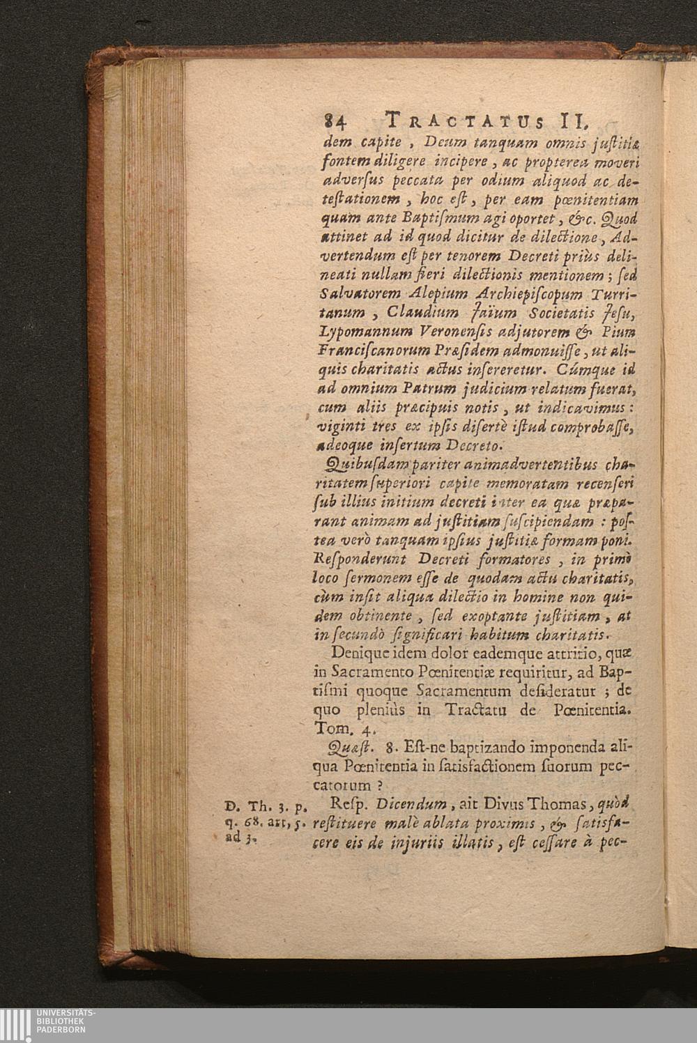 Tomus Tertius (1703) Continens Tractatus de Sacramentis in genere; de Baptismo, de Confirmatione, Eucharistia, Sacrificio Missæ; Constitutionem Innocentii XII. super celebratione Missarum, variaque alia decreta