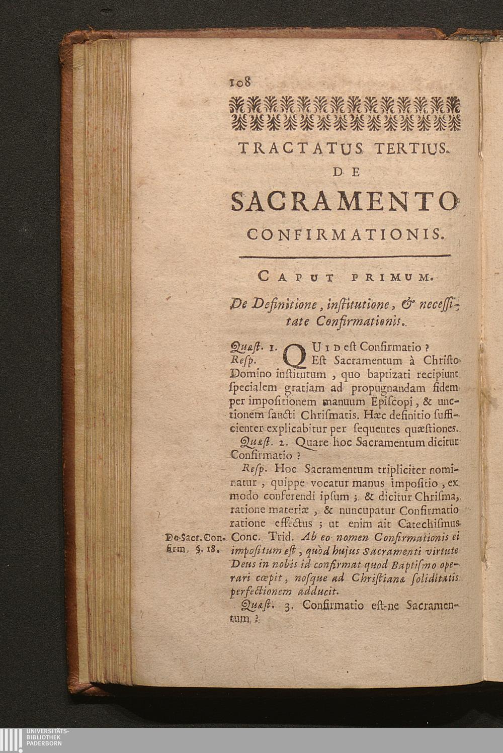 Tomus Tertius (1703) Continens Tractatus de Sacramentis in genere; de Baptismo, de Confirmatione, Eucharistia, Sacrificio Missæ; Constitutionem Innocentii XII. super celebratione Missarum, variaque alia decreta