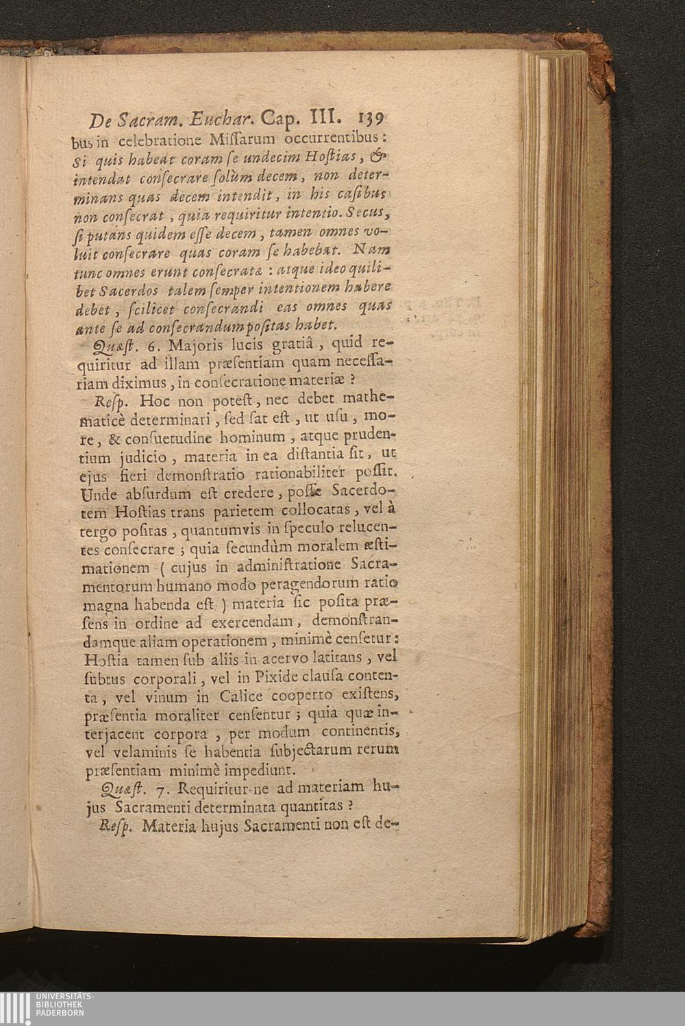 Tomus Tertius (1703) Continens Tractatus de Sacramentis in genere; de Baptismo, de Confirmatione, Eucharistia, Sacrificio Missæ; Constitutionem Innocentii XII. super celebratione Missarum, variaque alia decreta