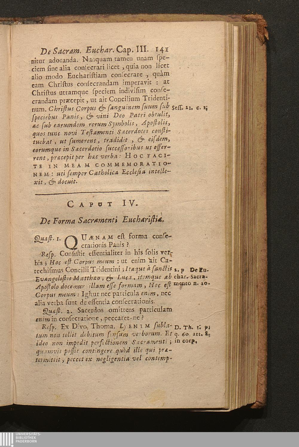 Tomus Tertius (1703) Continens Tractatus de Sacramentis in genere; de Baptismo, de Confirmatione, Eucharistia, Sacrificio Missæ; Constitutionem Innocentii XII. super celebratione Missarum, variaque alia decreta