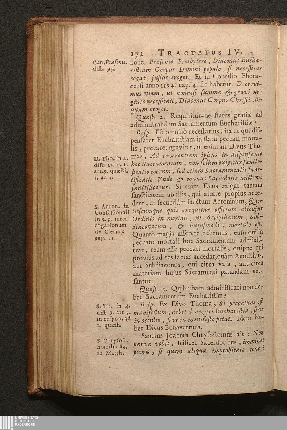 Tomus Tertius (1703) Continens Tractatus de Sacramentis in genere; de Baptismo, de Confirmatione, Eucharistia, Sacrificio Missæ; Constitutionem Innocentii XII. super celebratione Missarum, variaque alia decreta