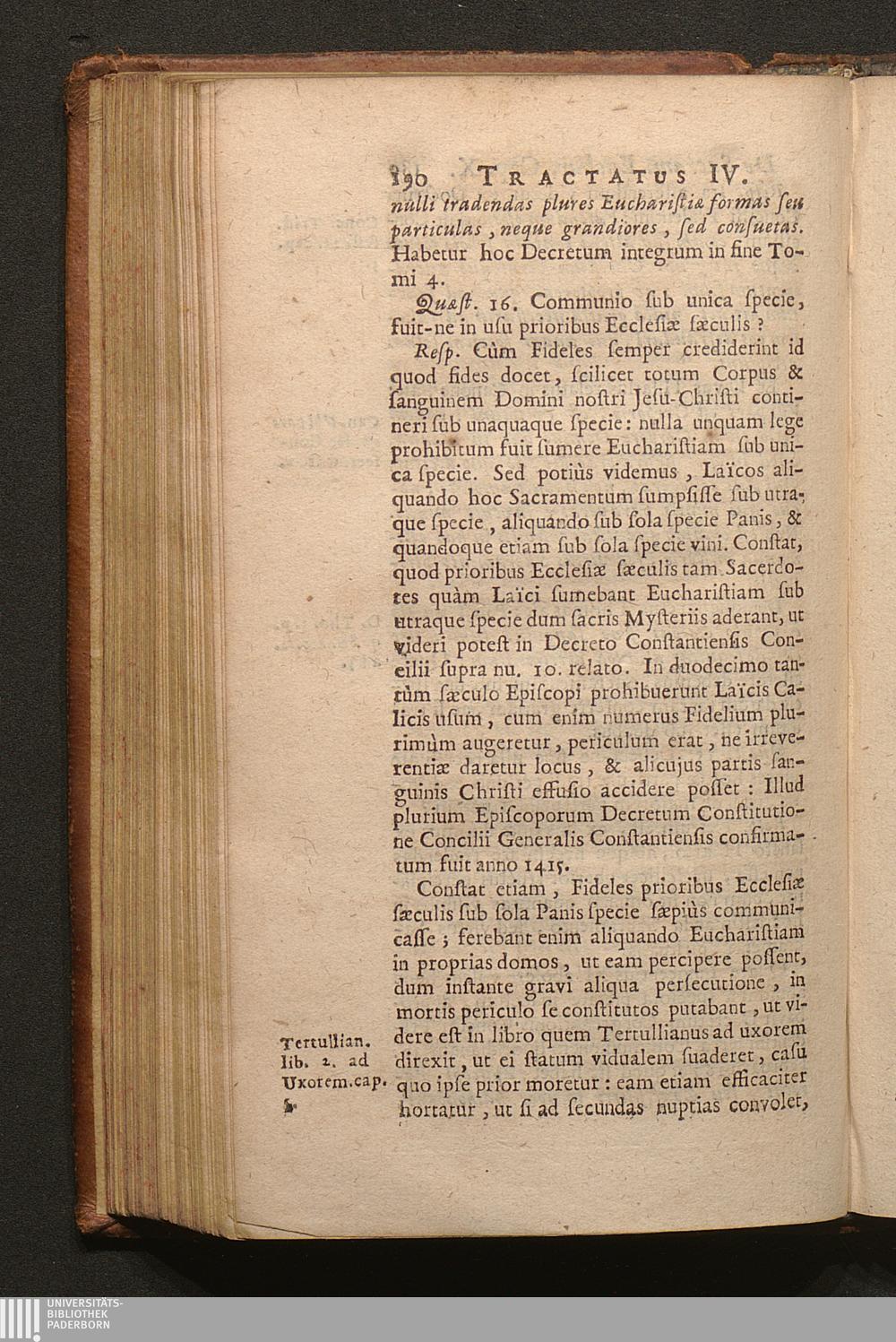 Tomus Tertius (1703) Continens Tractatus de Sacramentis in genere; de Baptismo, de Confirmatione, Eucharistia, Sacrificio Missæ; Constitutionem Innocentii XII. super celebratione Missarum, variaque alia decreta