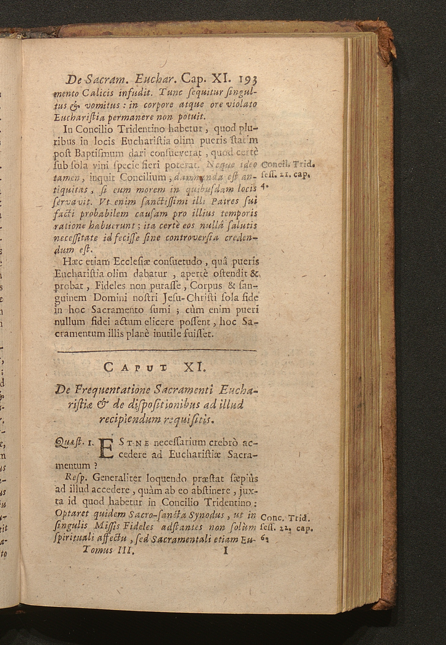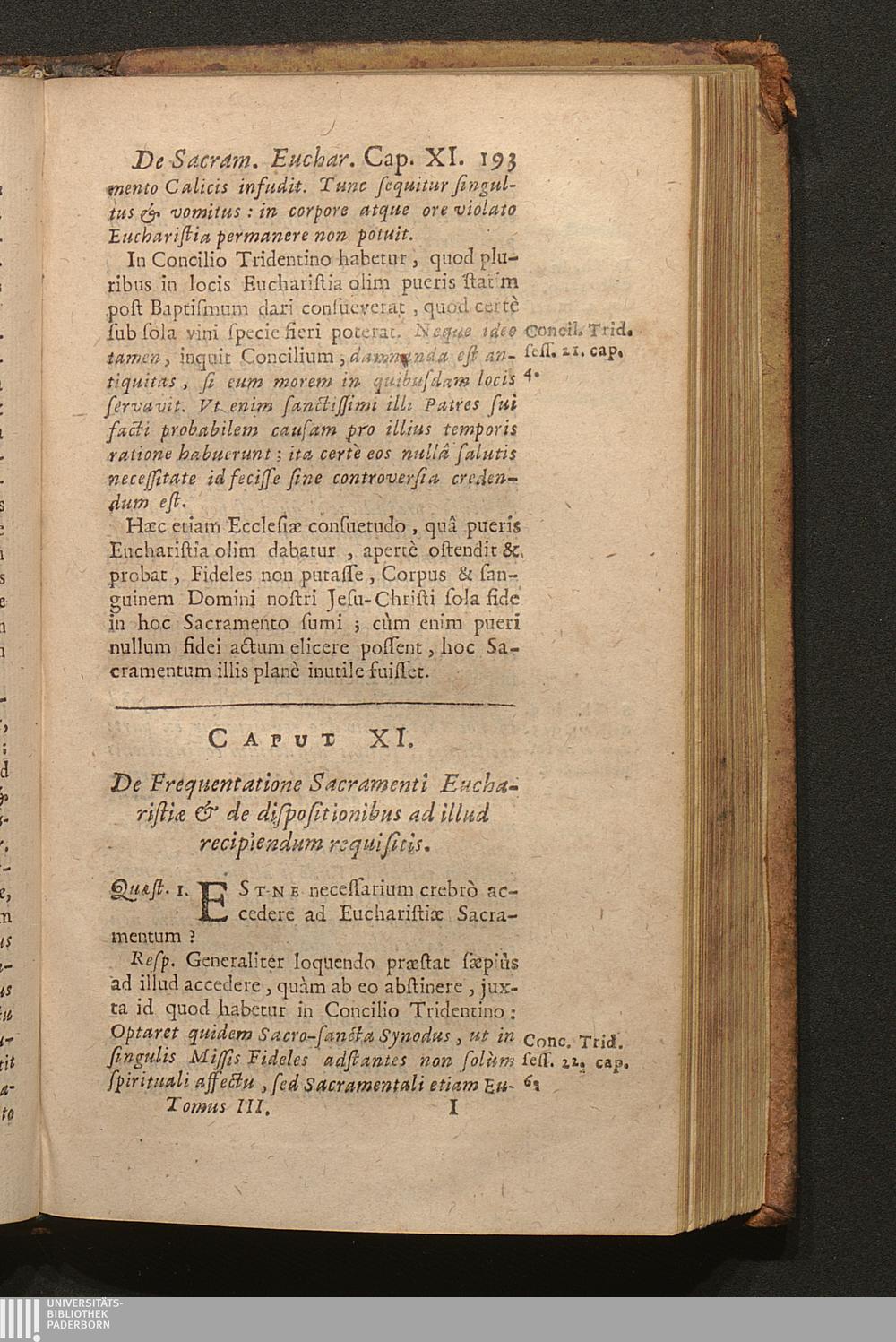 Tomus Tertius (1703) Continens Tractatus de Sacramentis in genere; de Baptismo, de Confirmatione, Eucharistia, Sacrificio Missæ; Constitutionem Innocentii XII. super celebratione Missarum, variaque alia decreta