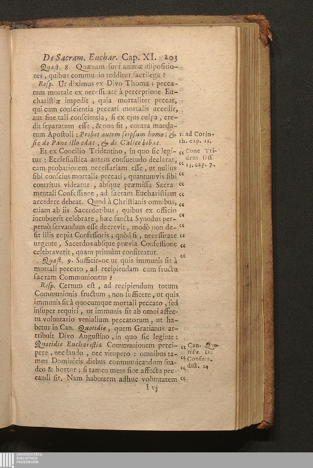 Tomus Tertius (1703) Continens Tractatus de Sacramentis in genere; de Baptismo, de Confirmatione, Eucharistia, Sacrificio Missæ; Constitutionem Innocentii XII. super celebratione Missarum, variaque alia decreta