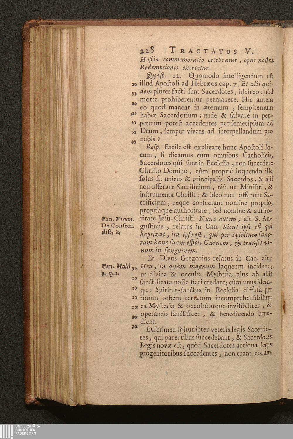 Tomus Tertius (1703) Continens Tractatus de Sacramentis in genere; de Baptismo, de Confirmatione, Eucharistia, Sacrificio Missæ; Constitutionem Innocentii XII. super celebratione Missarum, variaque alia decreta