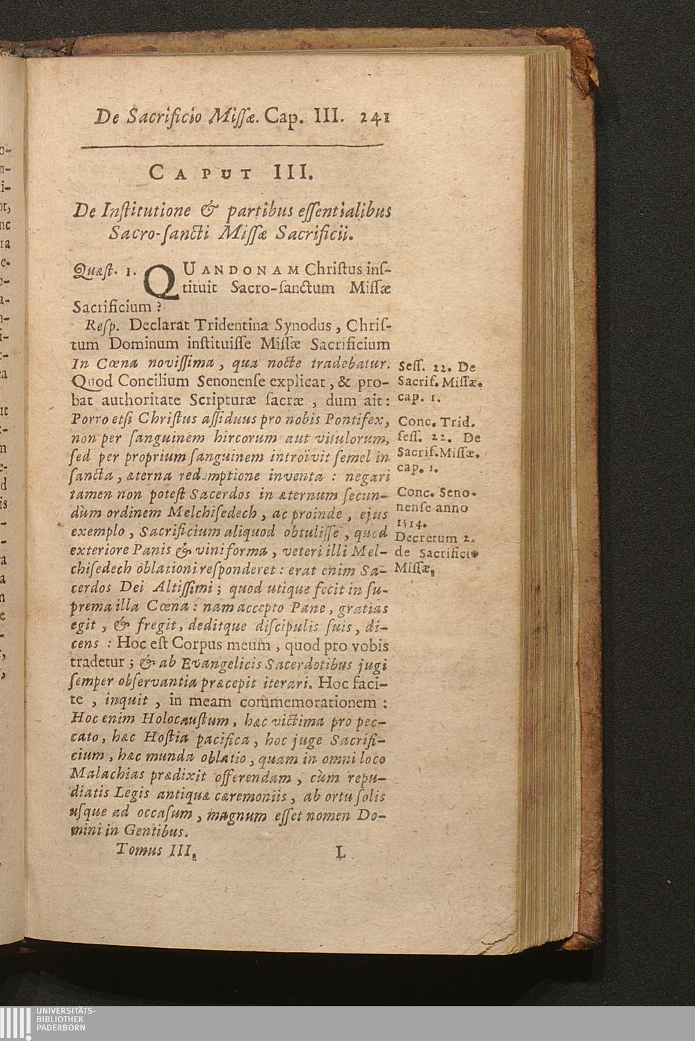 Tomus Tertius (1703) Continens Tractatus de Sacramentis in genere; de Baptismo, de Confirmatione, Eucharistia, Sacrificio Missæ; Constitutionem Innocentii XII. super celebratione Missarum, variaque alia decreta