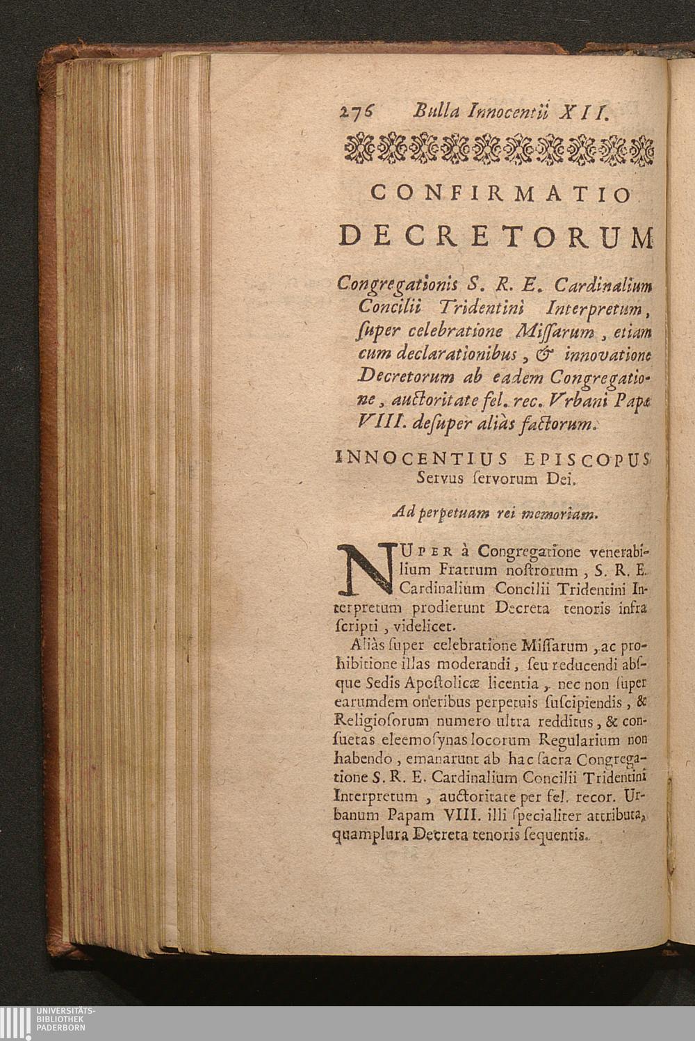 Tomus Tertius (1703) Continens Tractatus de Sacramentis in genere; de Baptismo, de Confirmatione, Eucharistia, Sacrificio Missæ; Constitutionem Innocentii XII. super celebratione Missarum, variaque alia decreta
