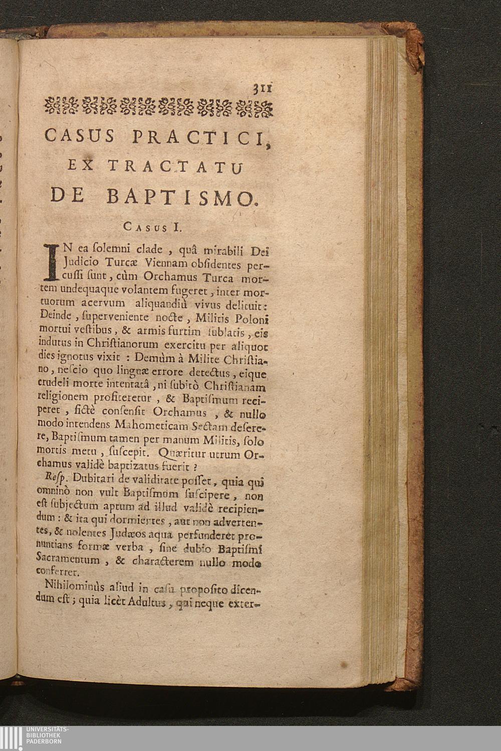 Tomus Tertius (1703) Continens Tractatus de Sacramentis in genere; de Baptismo, de Confirmatione, Eucharistia, Sacrificio Missæ; Constitutionem Innocentii XII. super celebratione Missarum, variaque alia decreta