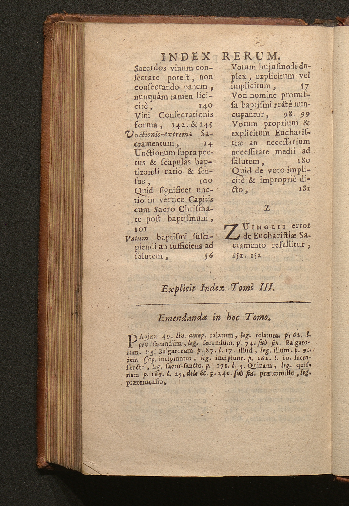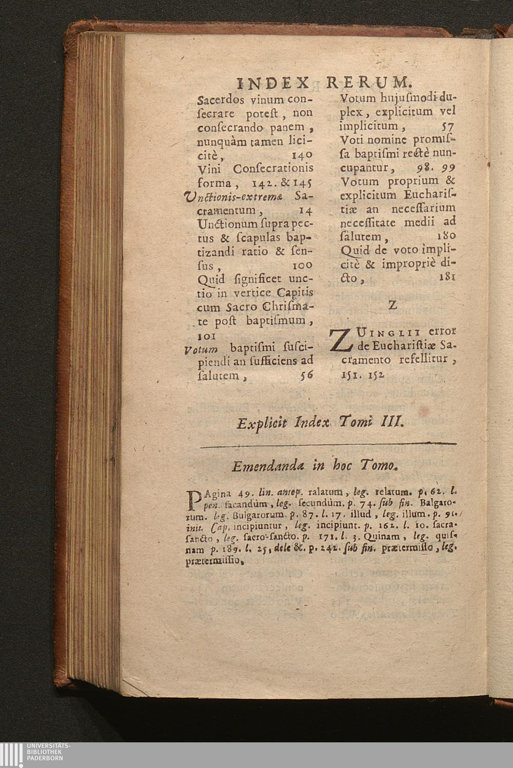 Tomus Tertius (1703) Continens Tractatus de Sacramentis in genere; de Baptismo, de Confirmatione, Eucharistia, Sacrificio Missæ; Constitutionem Innocentii XII. super celebratione Missarum, variaque alia decreta