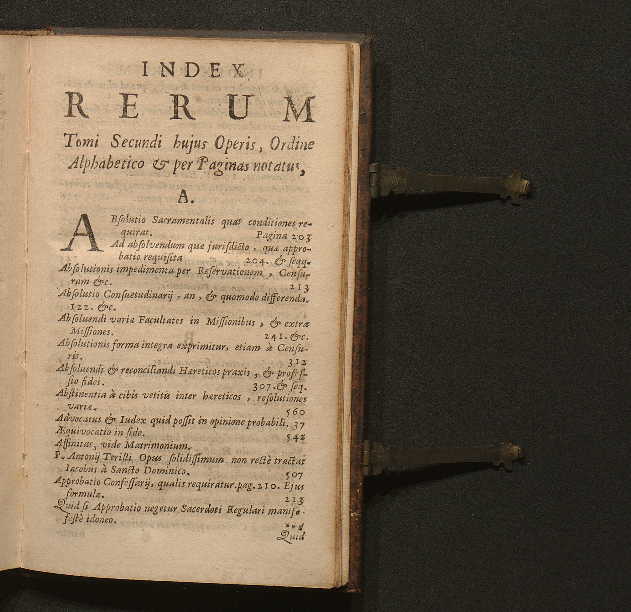 Index Rerum Tomi Secundi hujus Operis, Ordine Alphabetico & Paginas notatus.