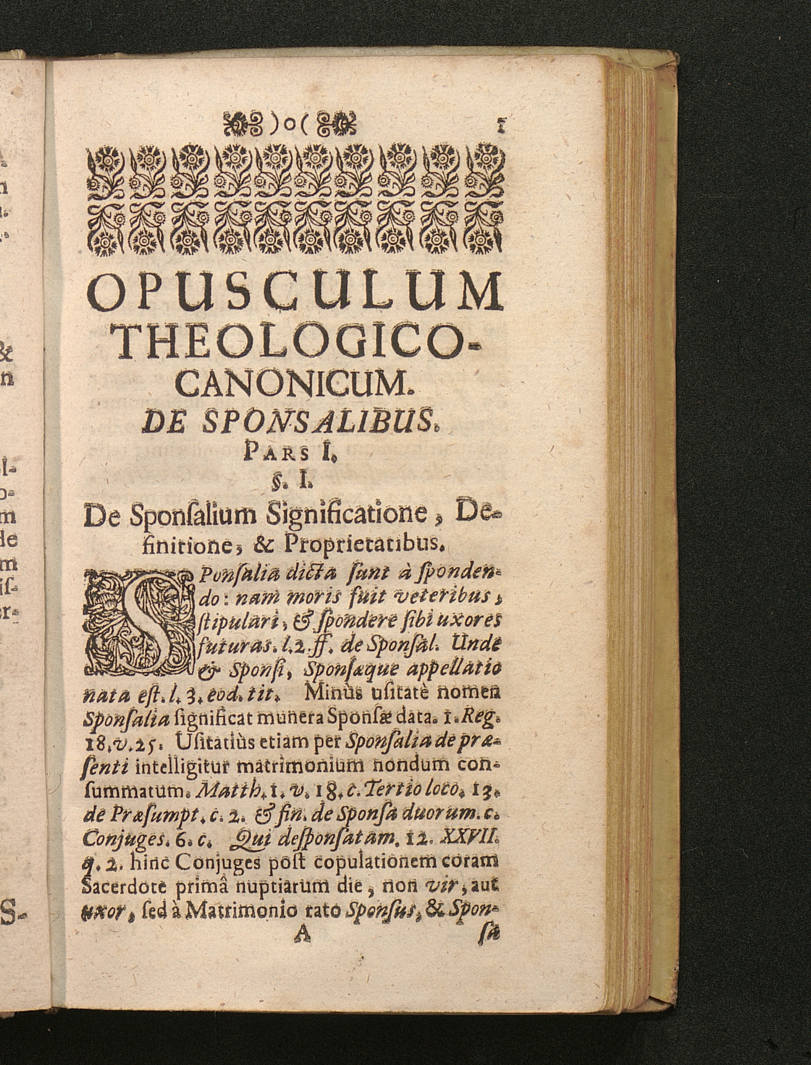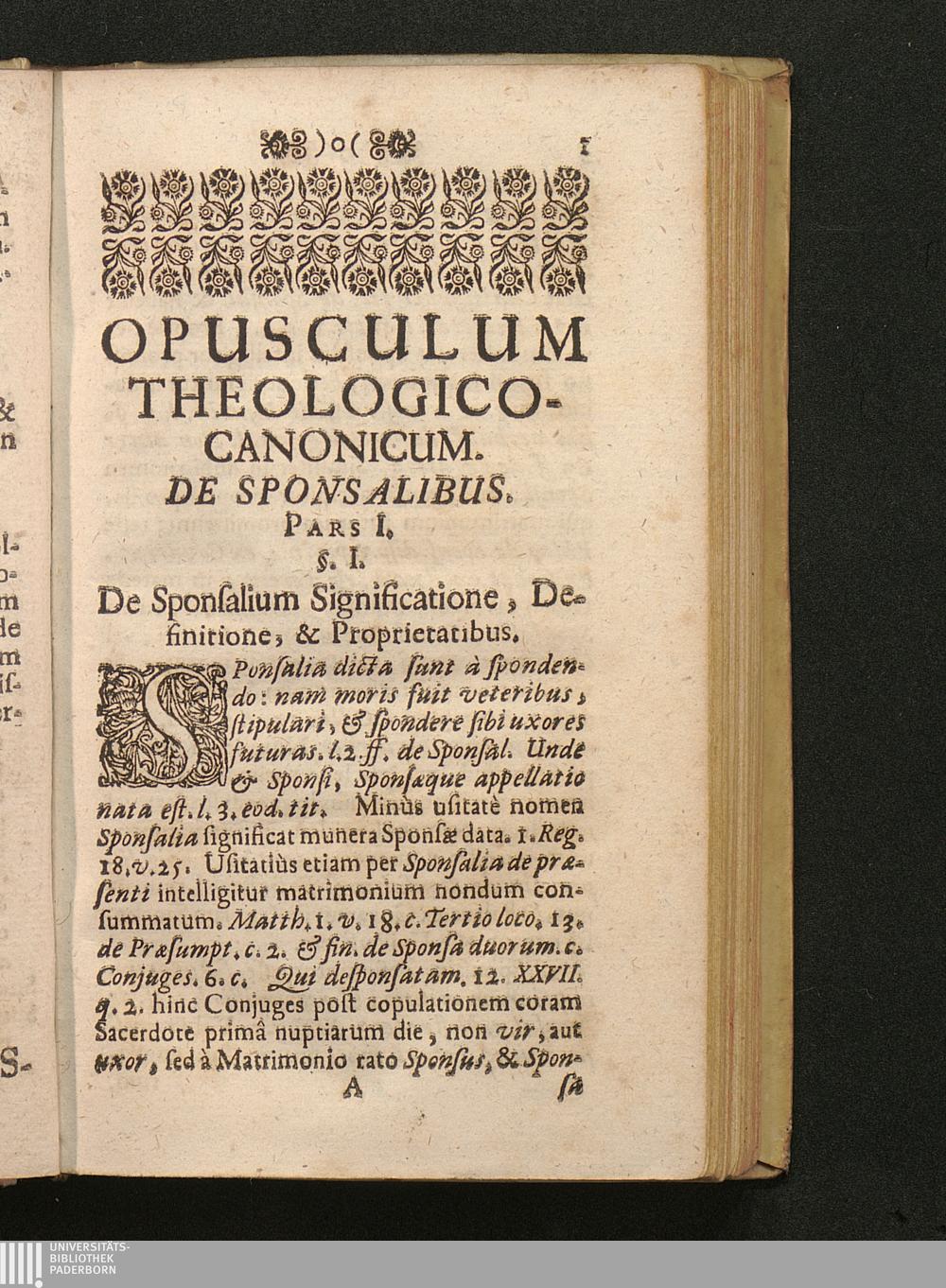 Opusculum Theologico-Canonicum De Sponsalibus : In tres partes divisum, Castissimis Sponsis Mariæ et Josepho consecratum / à Patre Joanne Kugler Societatis Jesu; SS. Theologiæ Doctore, in Alma ... Universitate Olomucensi Soc. Jesu, SS. Canonum Professore Publico, ac Ordinario conscriptum