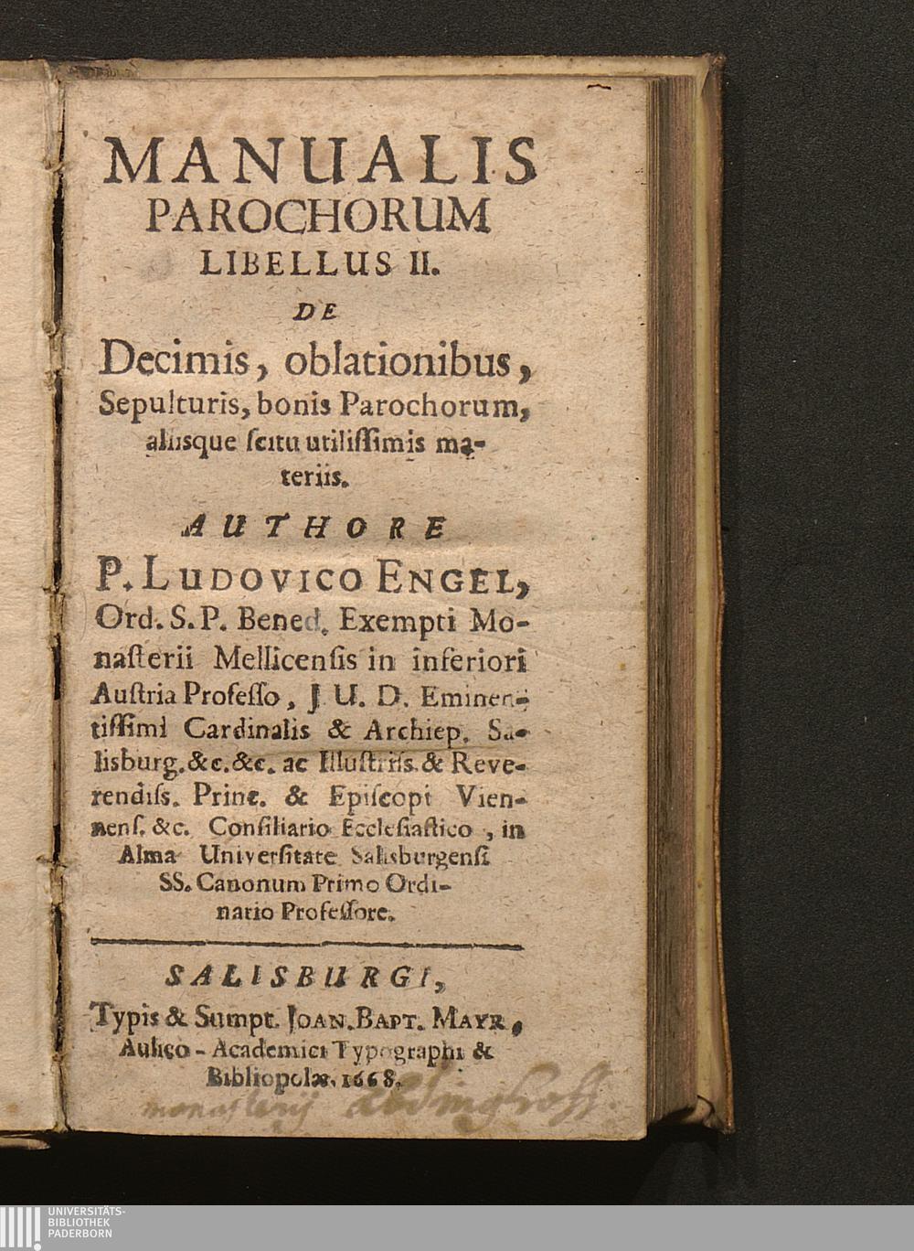 Libellus II. (1668) De Decimis, oblationibus, Sepulturis, bonis Parochorum, aliisque scitu utilissimis materiis