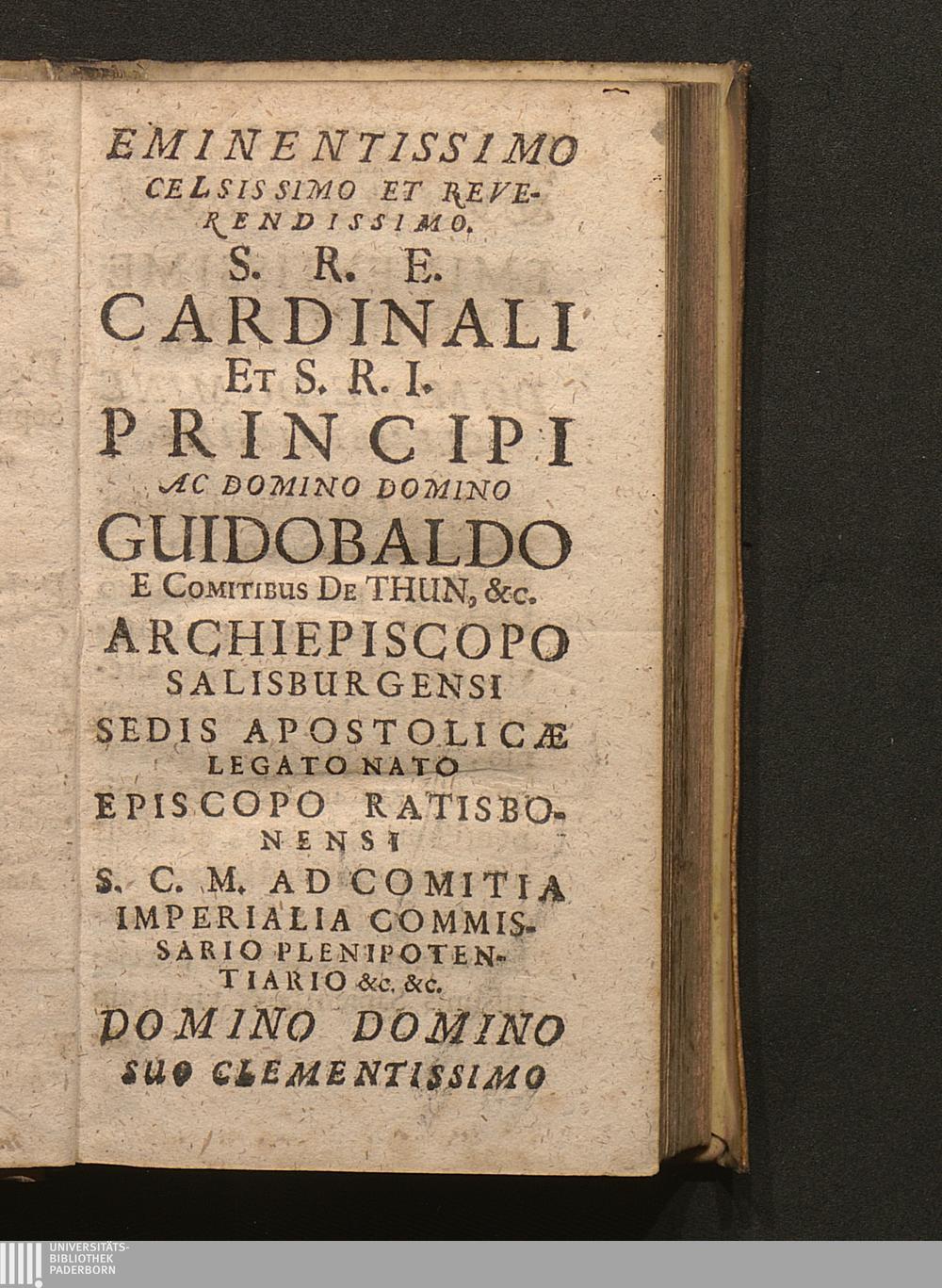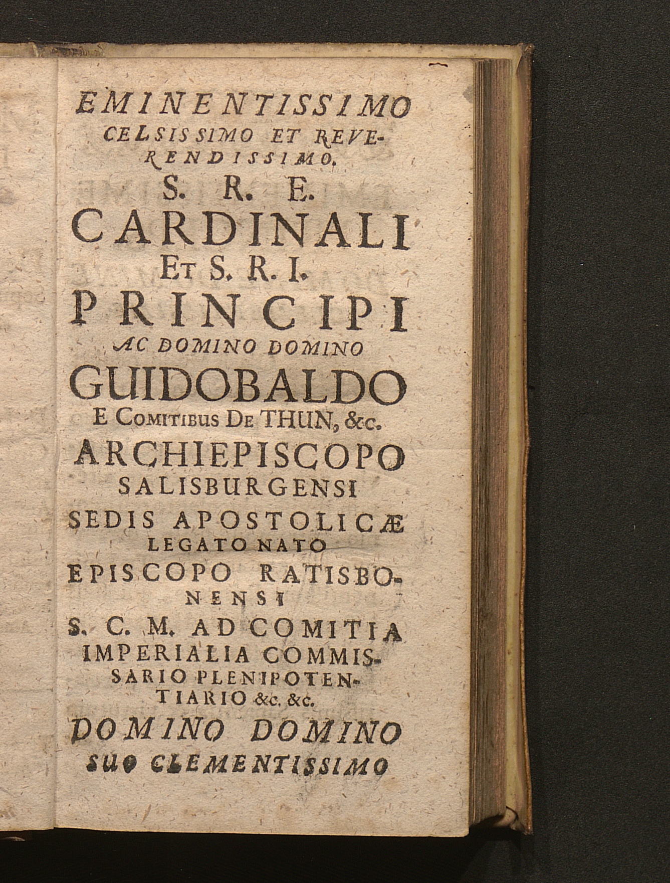 Eminentissimo Celsissimo Et Reverendissimo. S. R. E. Cardinali Et S. R. I. Principi[...]