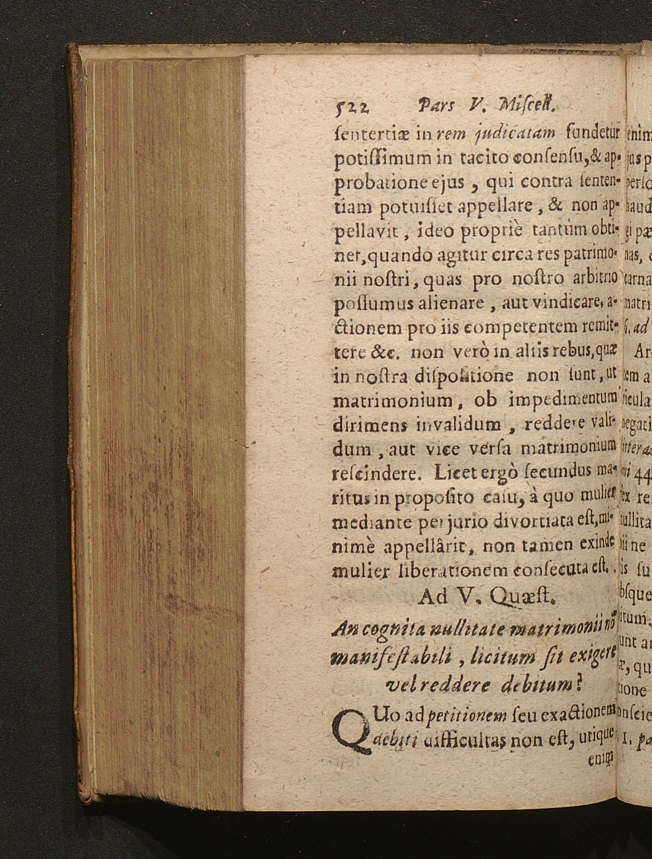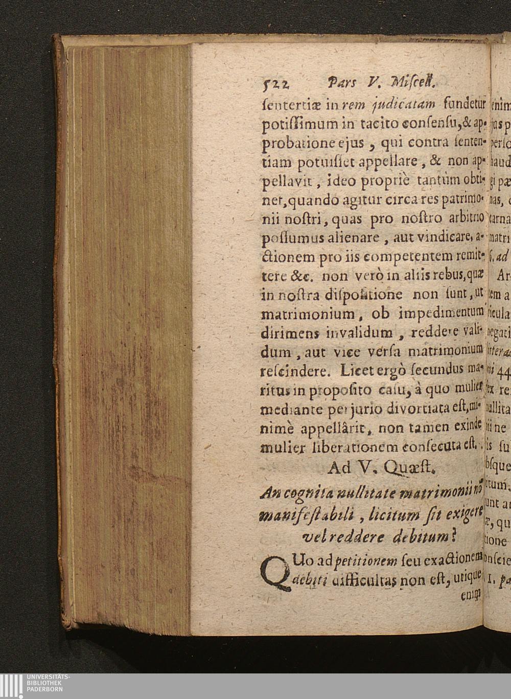 V. Nullitate matrimonii uni [...]tùm parti cognitâ, an liceat petere vel exigere[...]