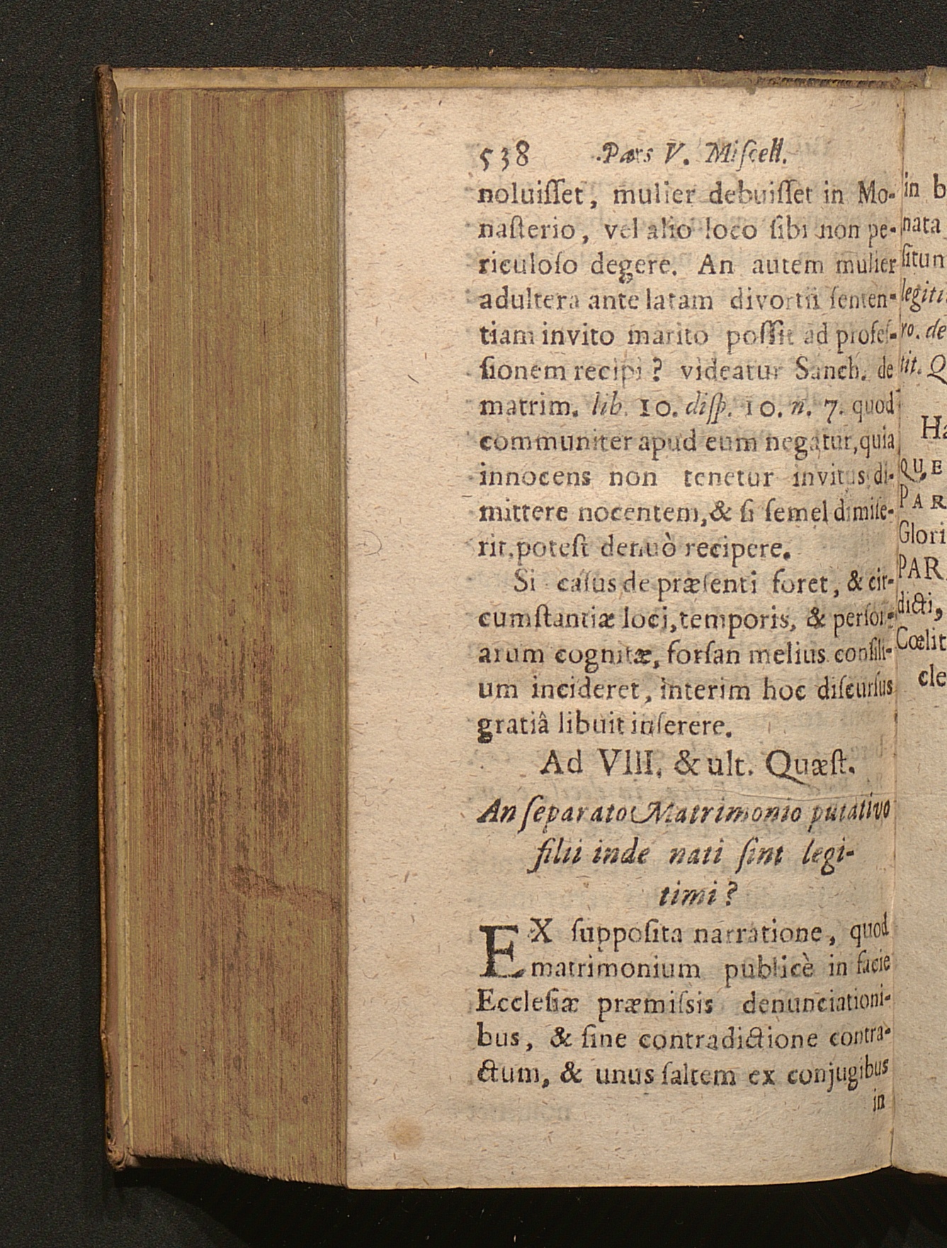 Casus Matrimonialis in quo sequentes quæstionæ.