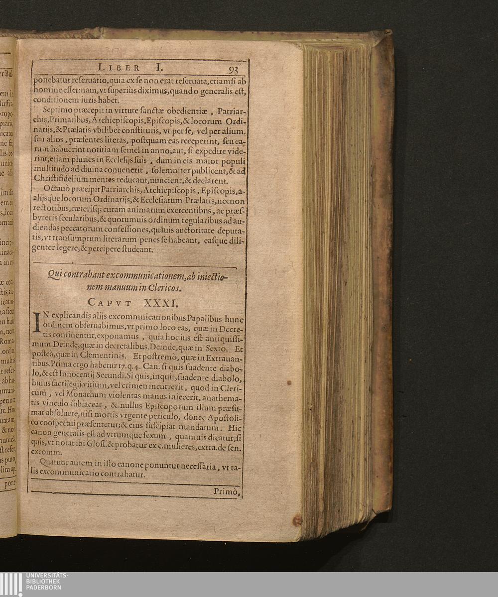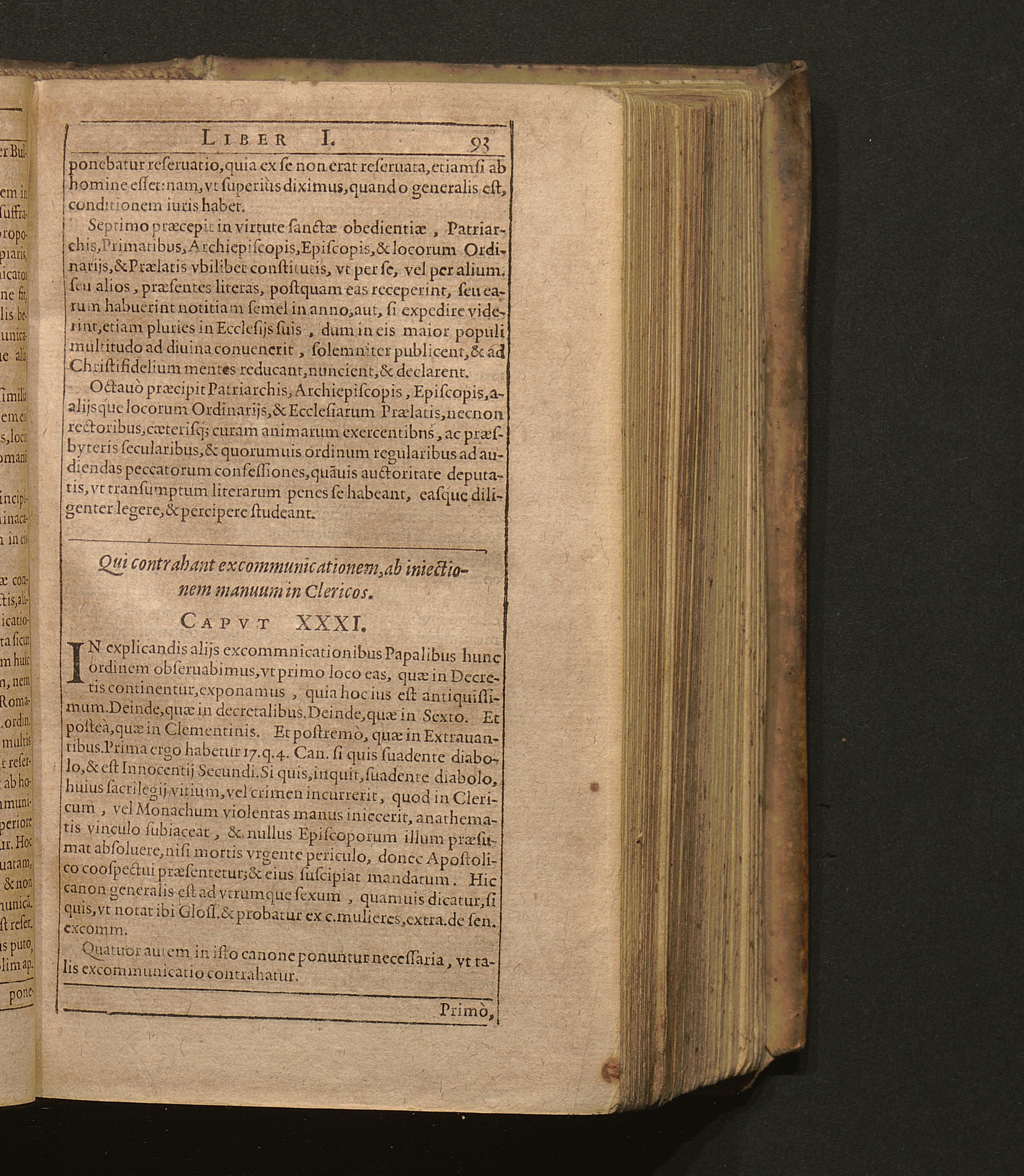 31. Qui contrahant excommunicationem ob iniectionem manuum in Clericos.