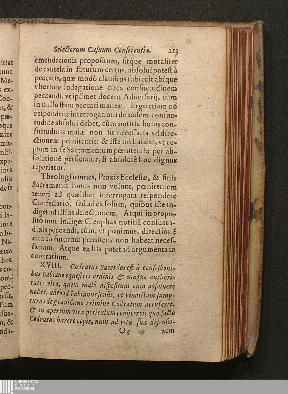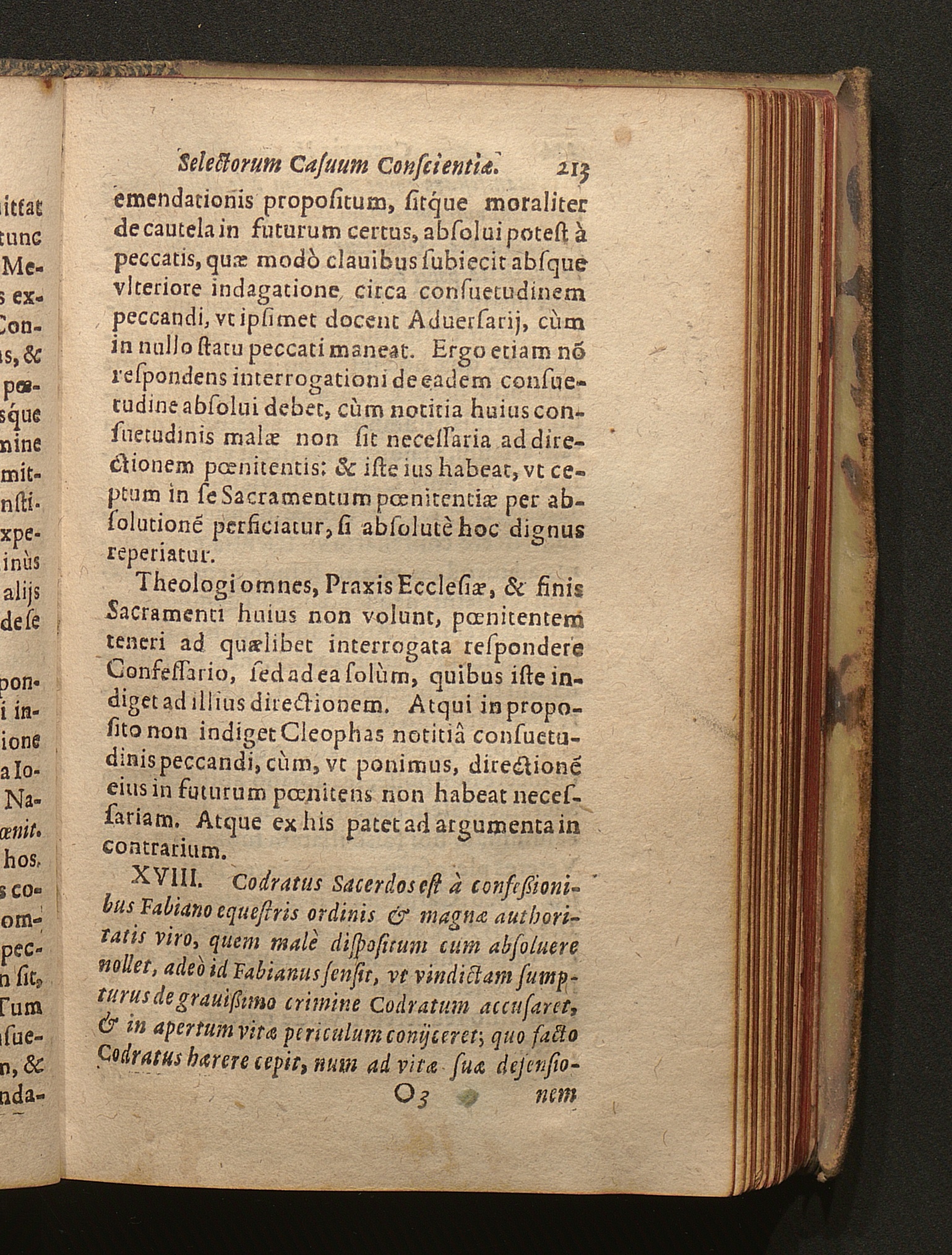 18. Codratvs, quia absolutionem Sacramentalem negat Fabiano, ab hoc reus agitur mortis:[...]