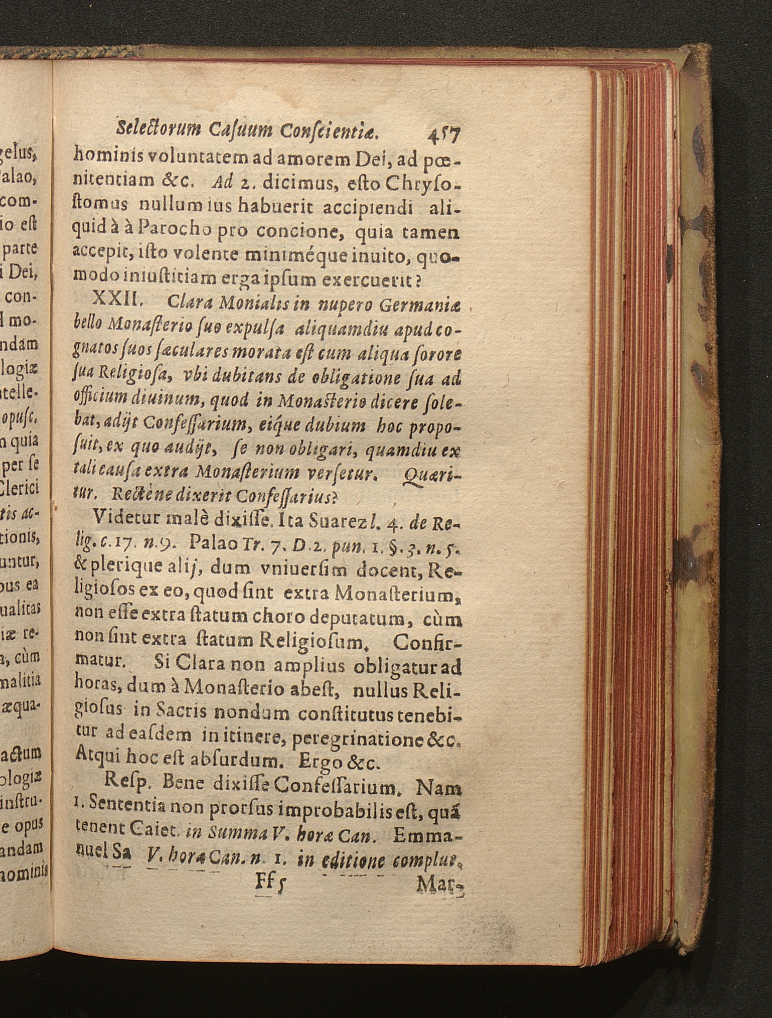 22. Clara Monialis tempore belli ex Monasterio suo exire coacta non tenetur ad horas[...]