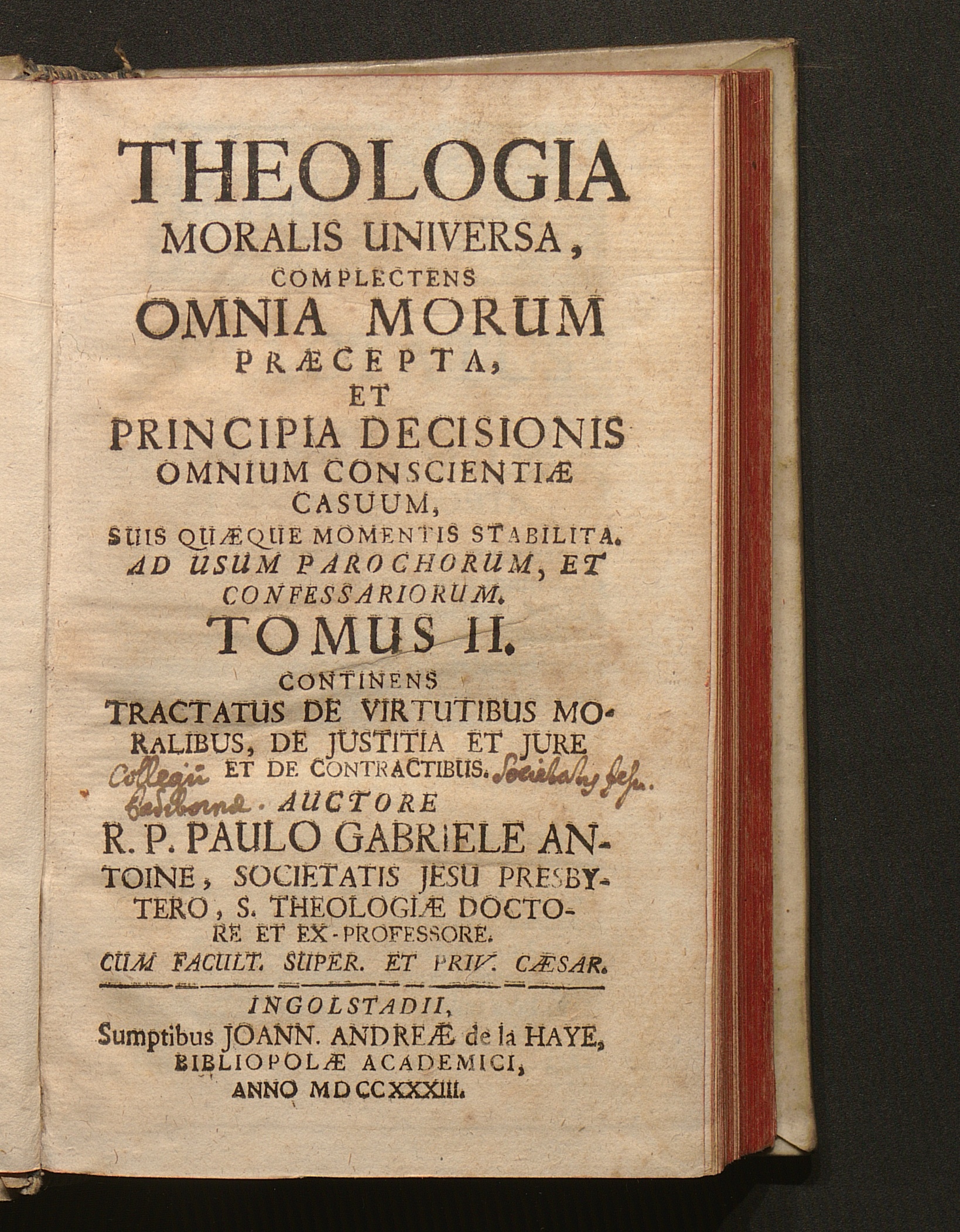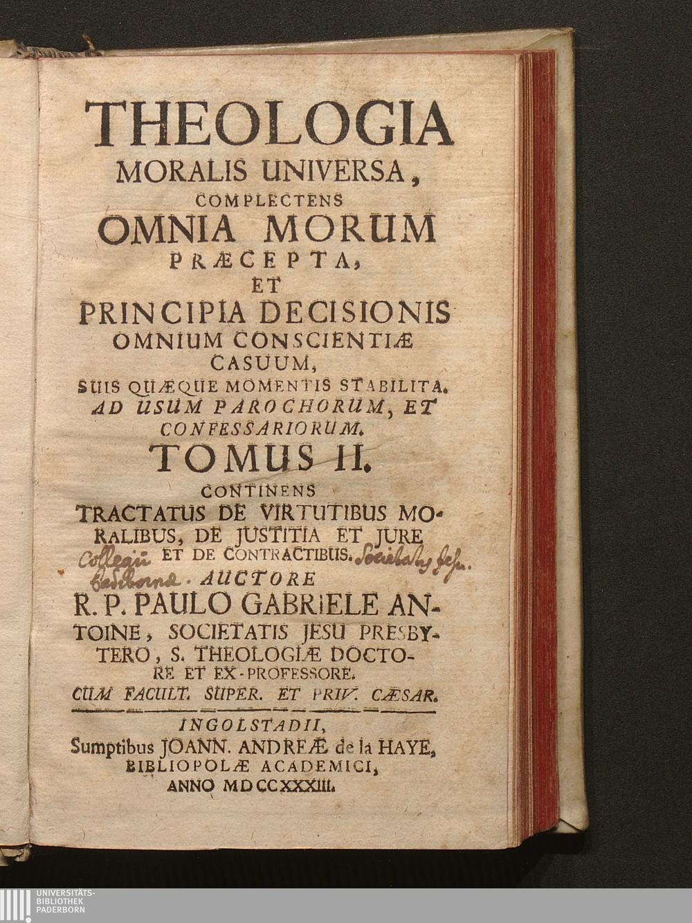Tomus II. (1733) Continens Tractatus De Virtutibus Moralibus, De Justitia Et Jure Et De Contractibus