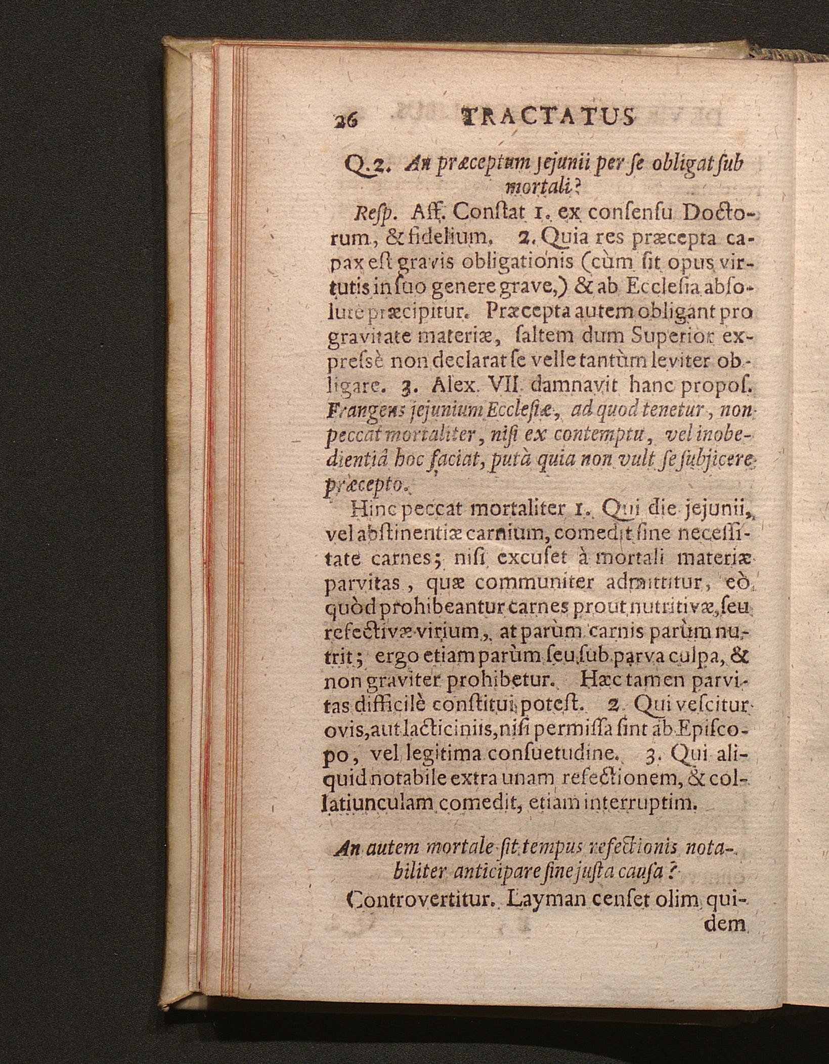 Q. 2. An præceptum jejunii per se obligat sub mortali?