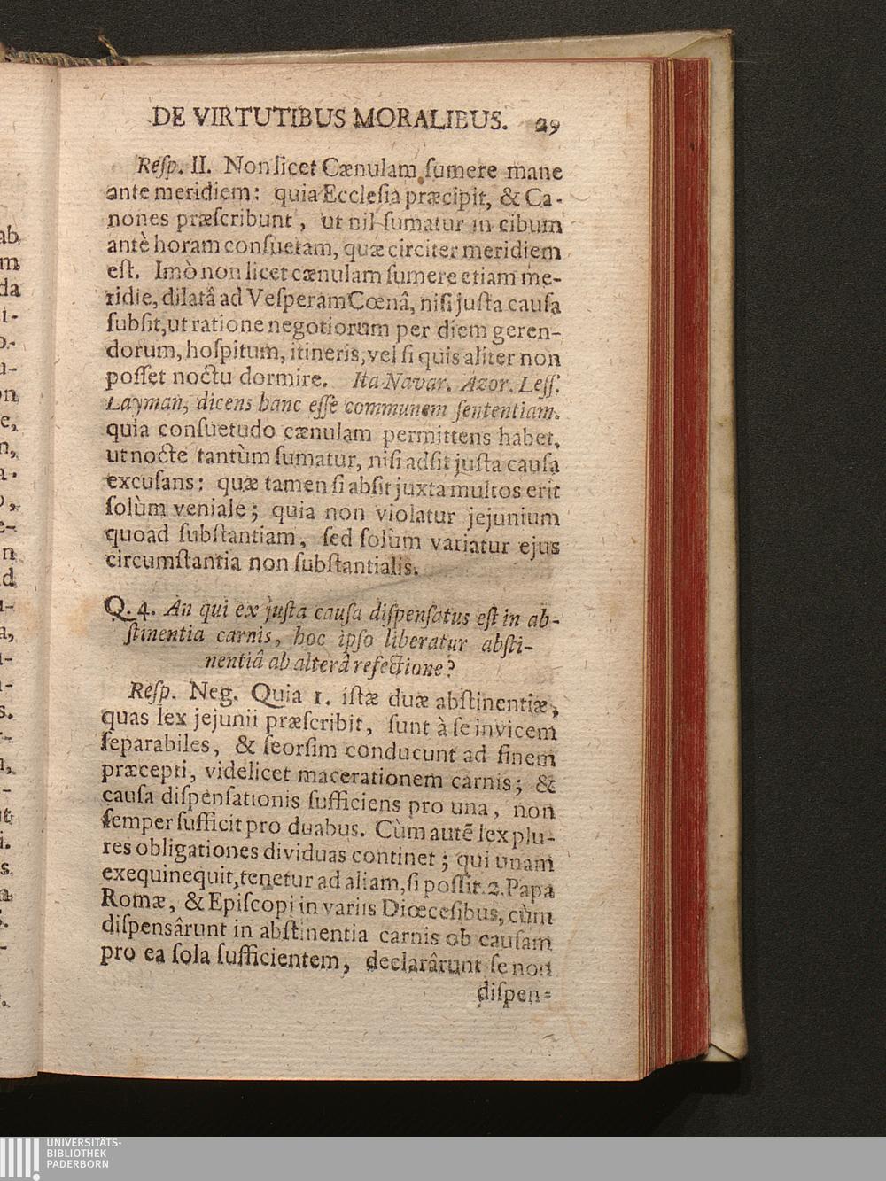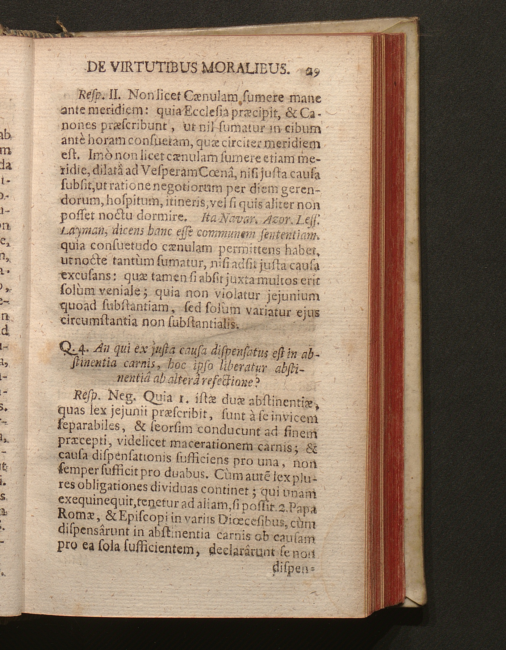Q. 4. An qui ex justa causa dispensatus est in abstinentia carnis, hoc ipso liberatur[...]